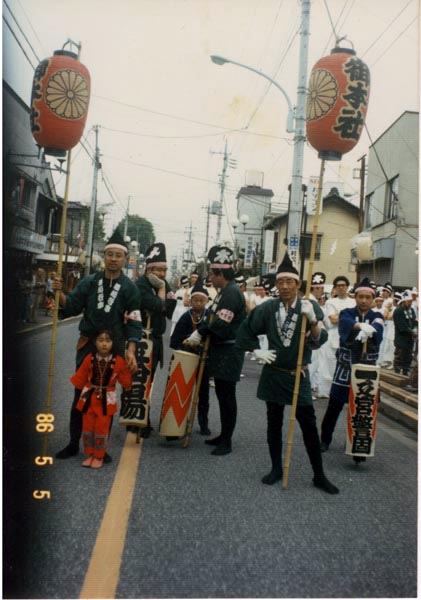 筆者は子供時分、それこそ小学校に上がったかどうかという頃から、会所に行って遊んでました。 だから最初は5つとか6つくらいの年の頃かな。なんだかものすごい昔ですね。 で、7つとか8つ位には会所に入り浸りです。で、親父の後をくっついてずっと。 おいでに初めて出たのは10歳になってませんでしたね。8つか9つか。確か小学校3年だった。 親父があぶないから駄目というのだけど、行列が出発した後でお宮に直接行って勝手に入っていったんです。 懐かしい話しです。 |