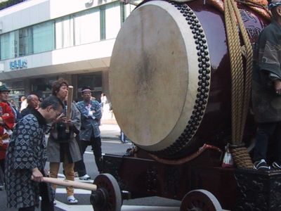 聞いた所によると、元々御本社の太鼓に持ってきた話だそうです。