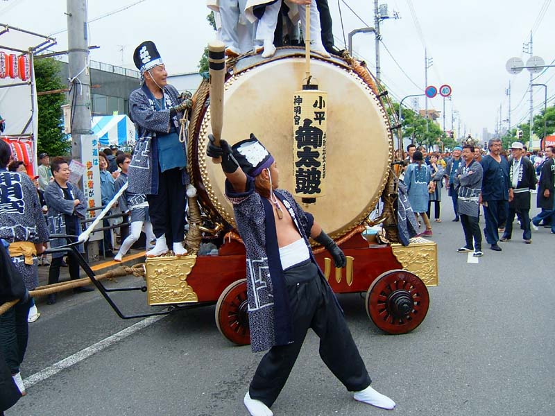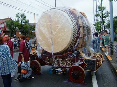 小平神明宮の太鼓。浅野太鼓店。台車の角の金具は鋳物で吹いているのだろうか?共通だ。