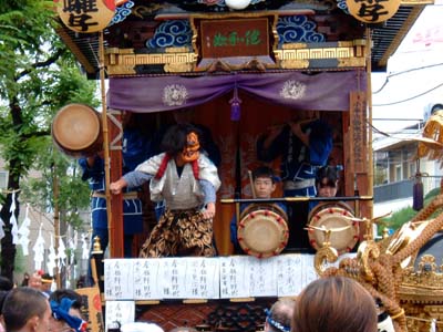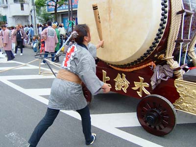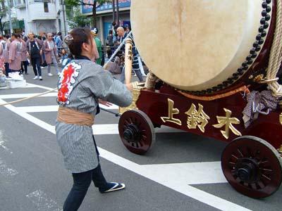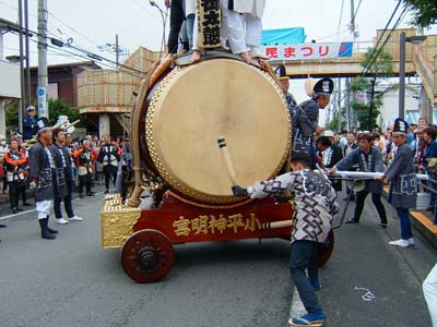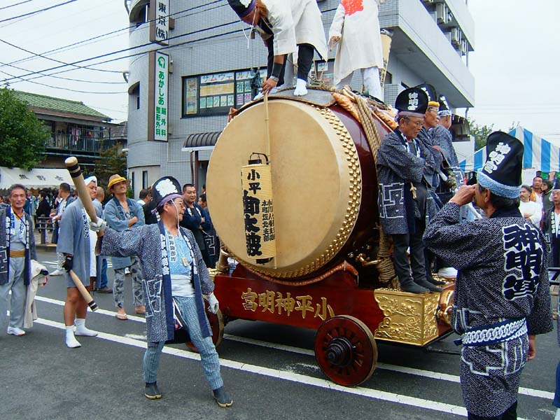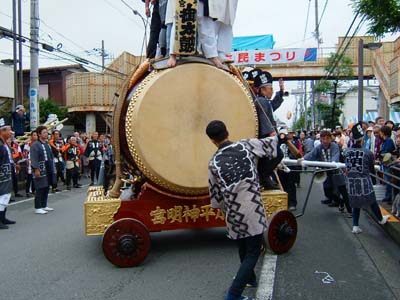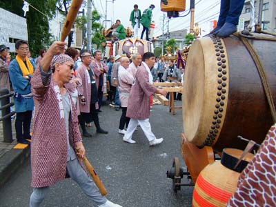 昔の府中八幡宿の車丑の台車の方がちょうど良い高さの物が多い。叩き手を考えていて洗練されていると感じる。
