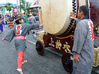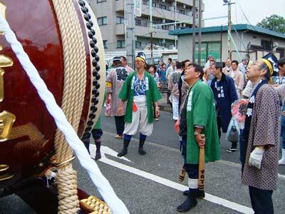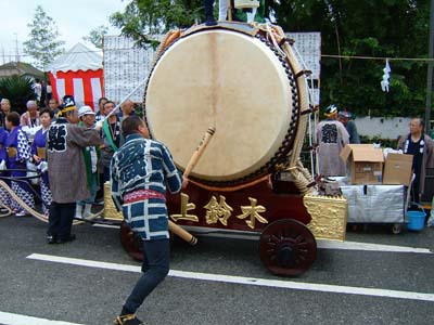 上鈴木、市長の前で太鼓を寄せ、神輿を先に行かせます。