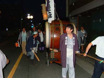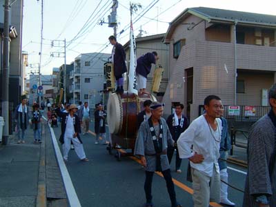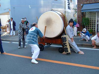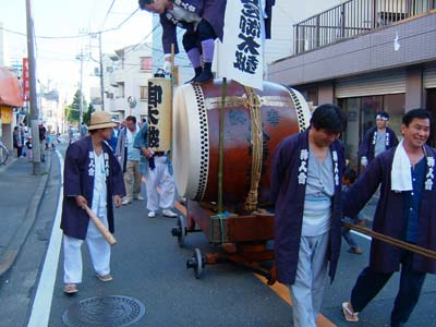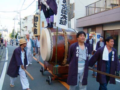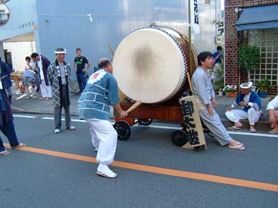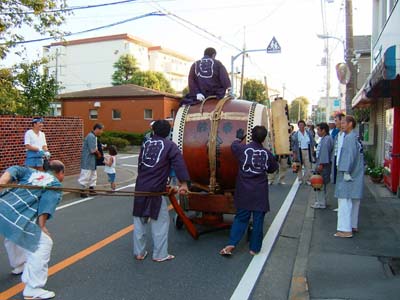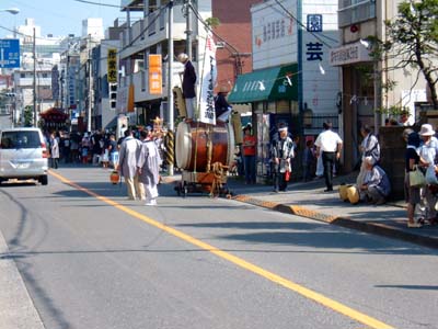 太鼓は再度住宅地を戻り、旧甲州街道へ出る。