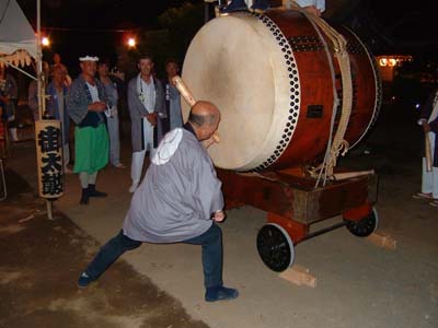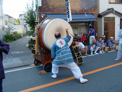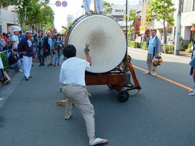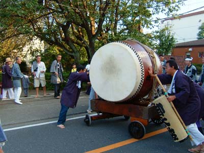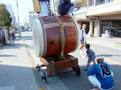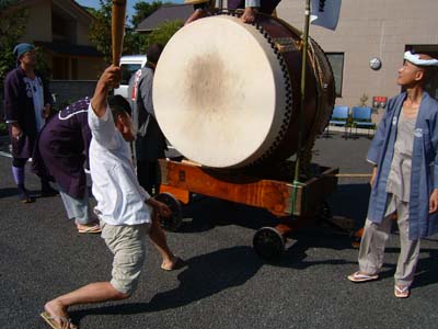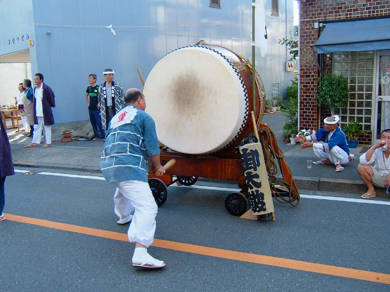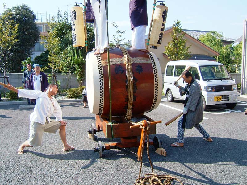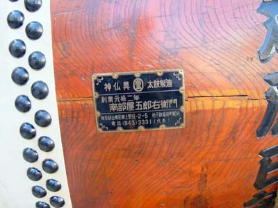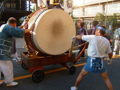 こちらの太鼓は、4尺くらいか。浅草の宮本で作って、張り換えは南部屋。