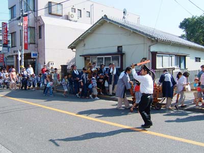昼は太鼓の後に子ども神輿が付いて回っている。