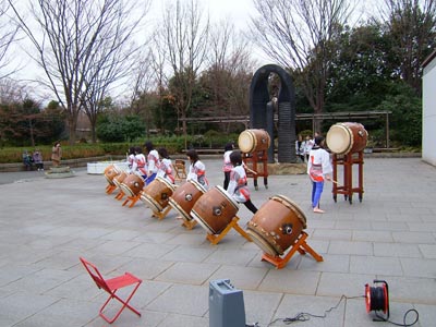 と、その横では武蔵国府太鼓。彼女らは二中の生徒だそうだ。