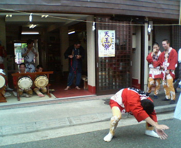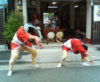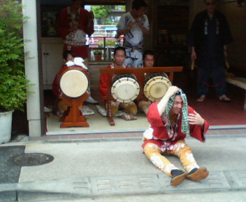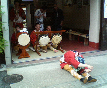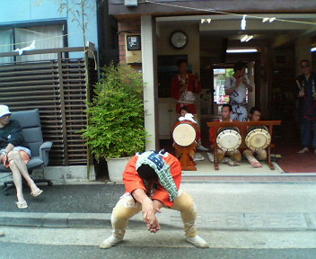 こちら囃子を頼まれた片町の青年。面が無くて素面です。