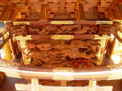 右側面脇障子。ガマ仙人と、伝説を題にとったと思われる仙人像であった。