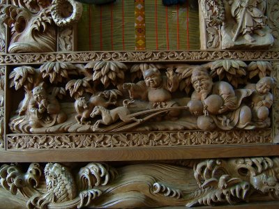 彫り師に自由に彫らせたという。なかなか興味を惹く題材が多い。