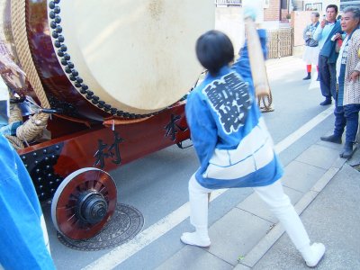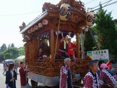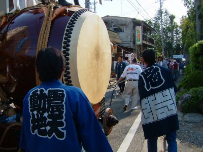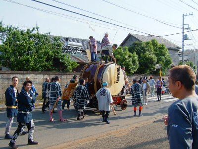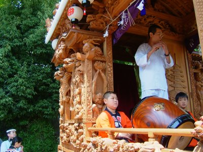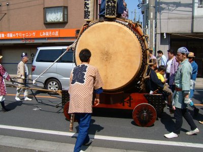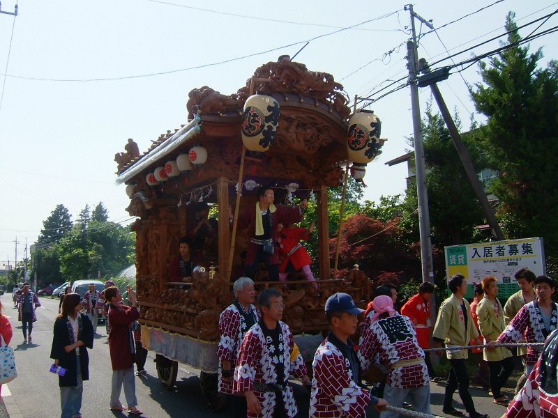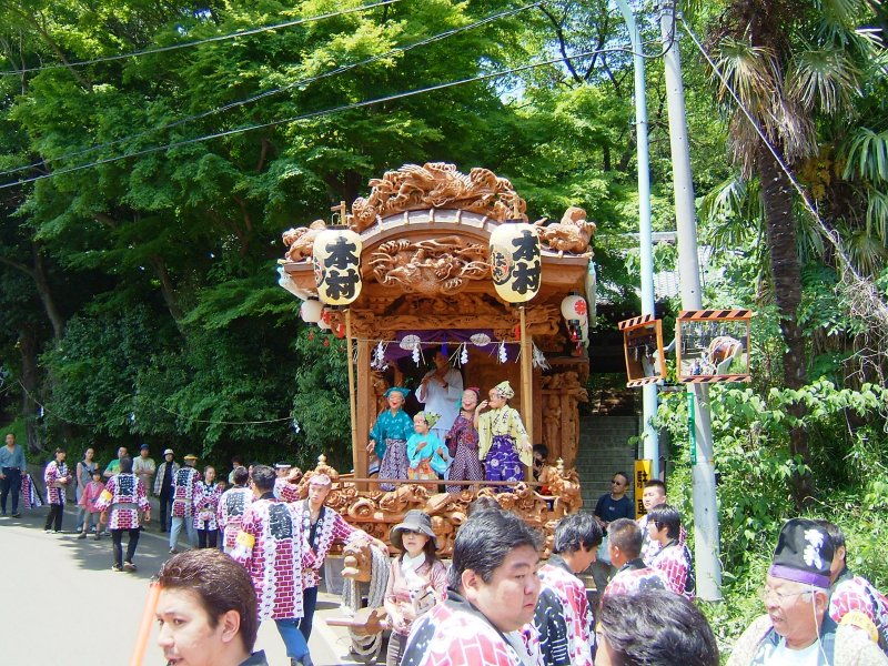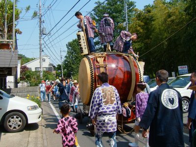 後に続く山車。本村の囃子連だけでなく、各所の友好団体が。