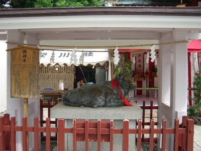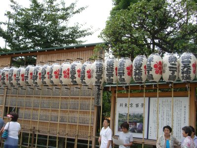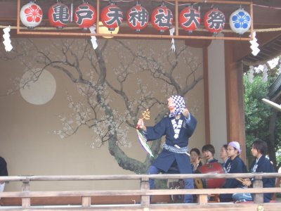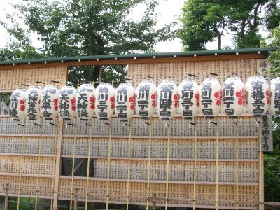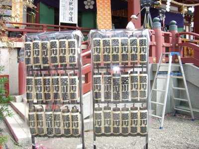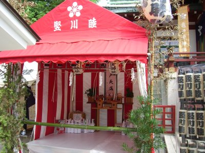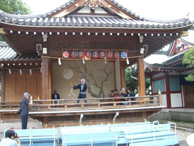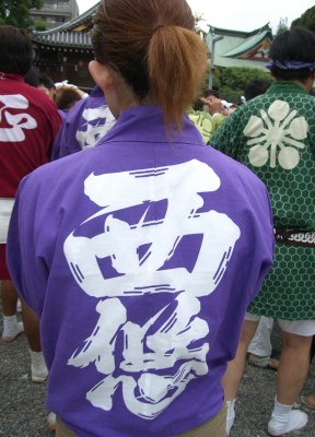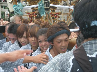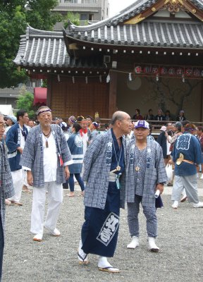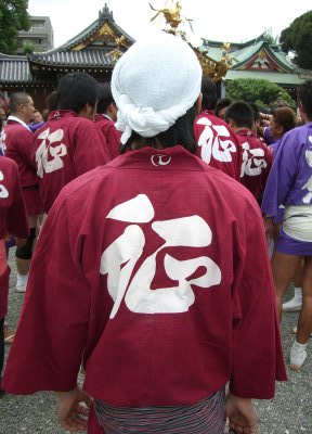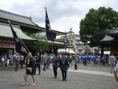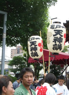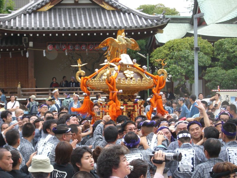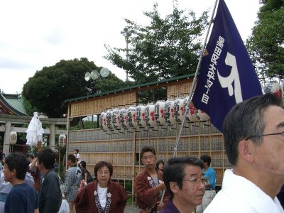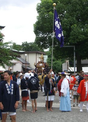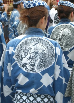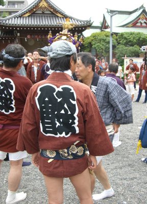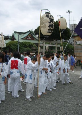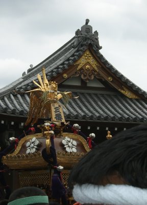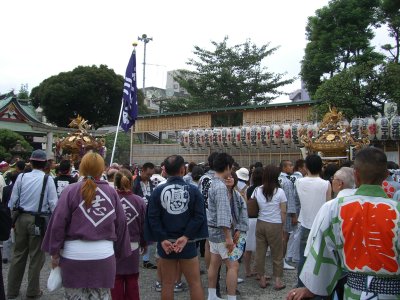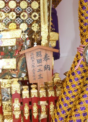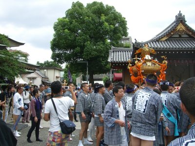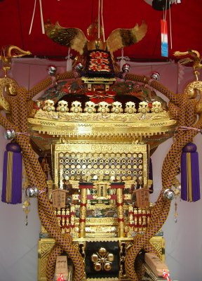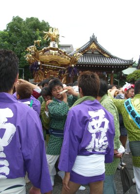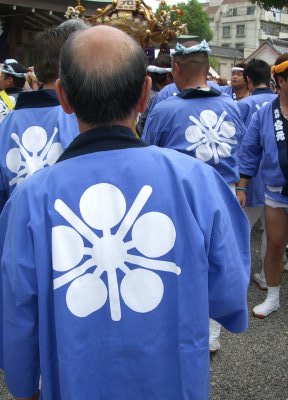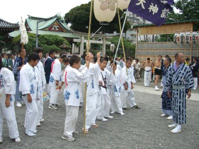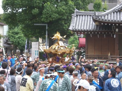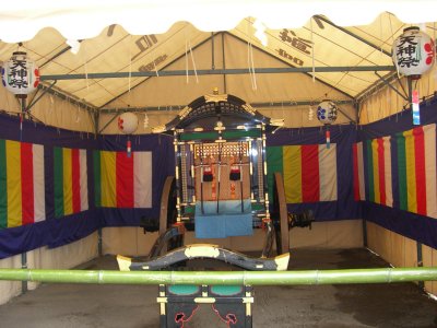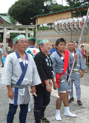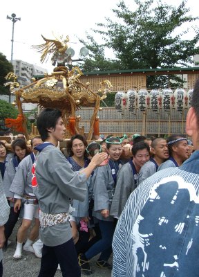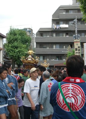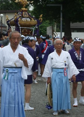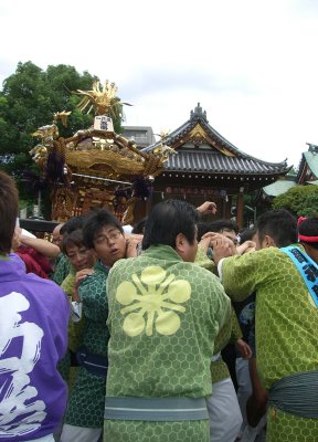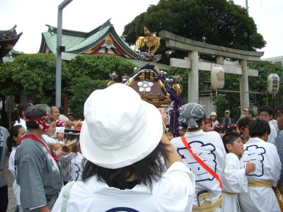 また御写真を頂きました。ありがとうございます。 今回は亀戸天神の祭礼の写真を頂きました。 写真に写っている本社神輿は新しいですね。 筆者の手元にある写真は、鳳凰の代わりに梅鉢がついています。 |