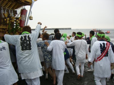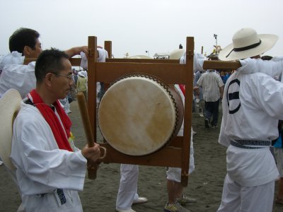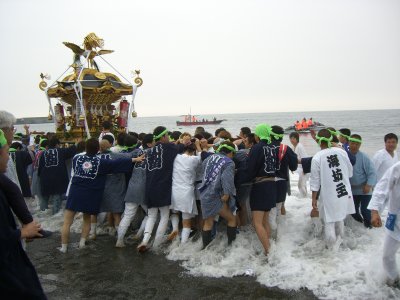 茅ヶ崎の海岸でおこなわれる浜降祭。