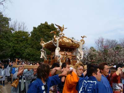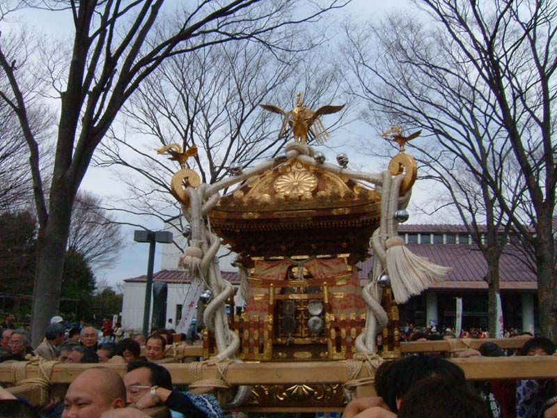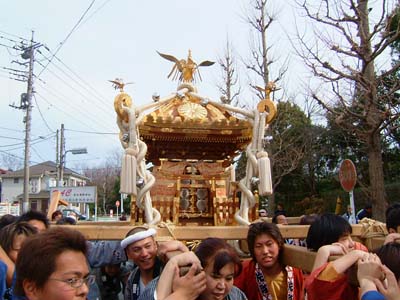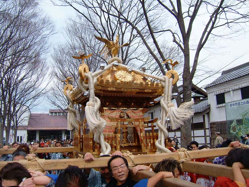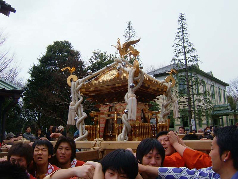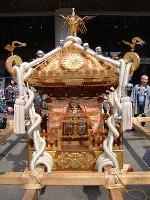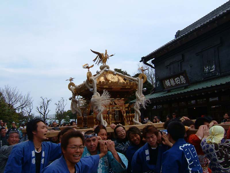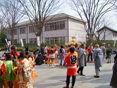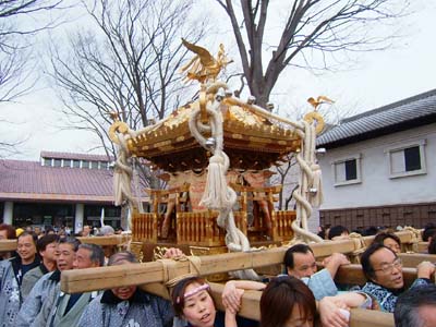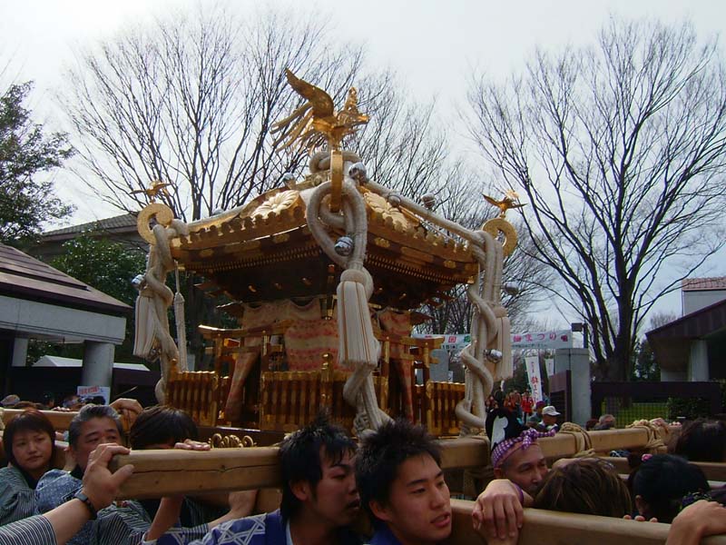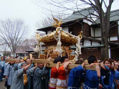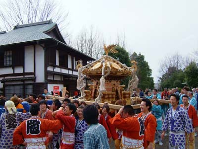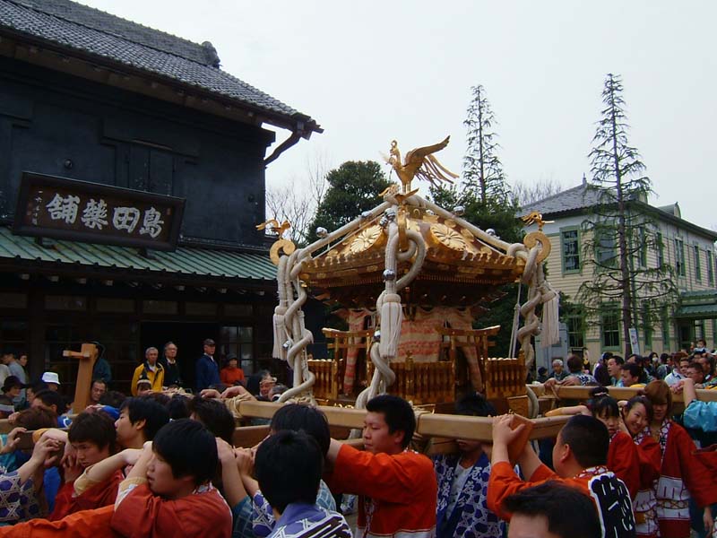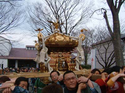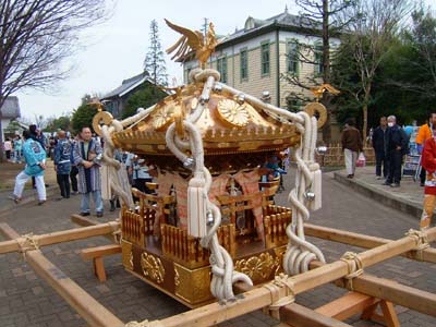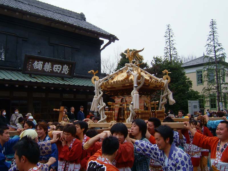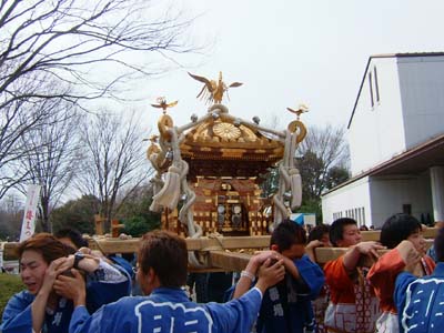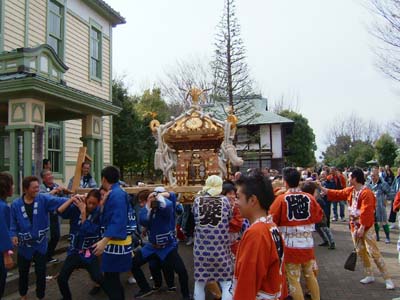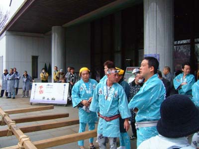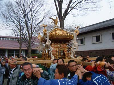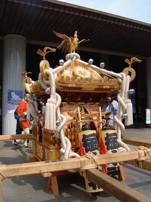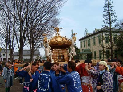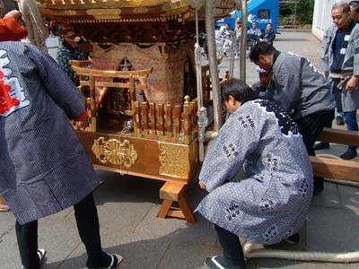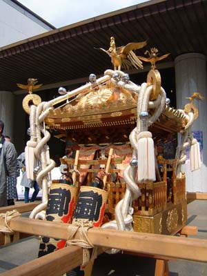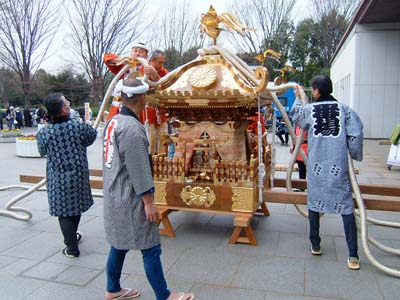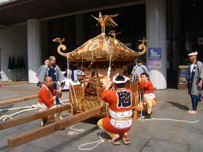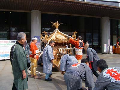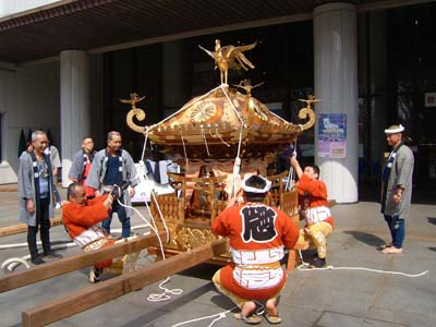 さて、時間になる。神輿は担いで博物館搬入口へ移送された。