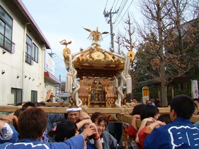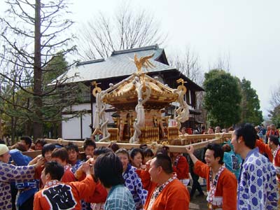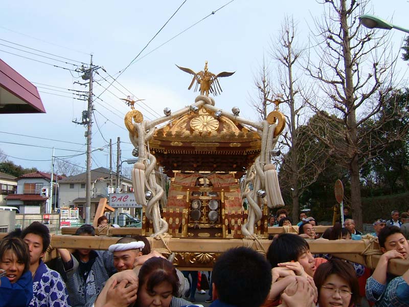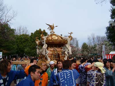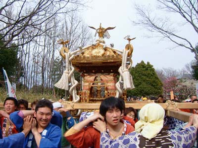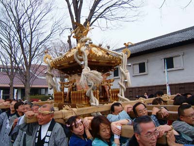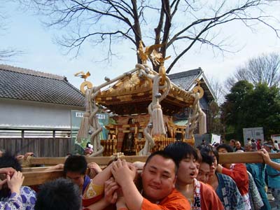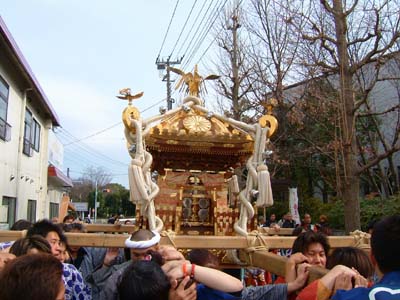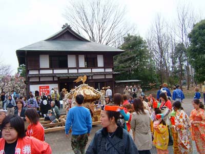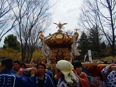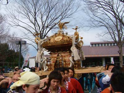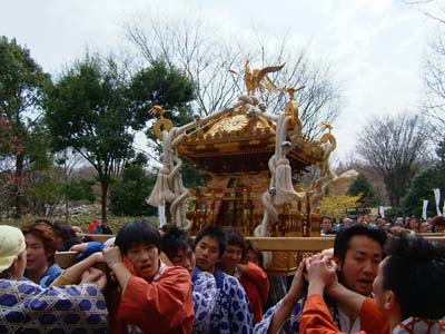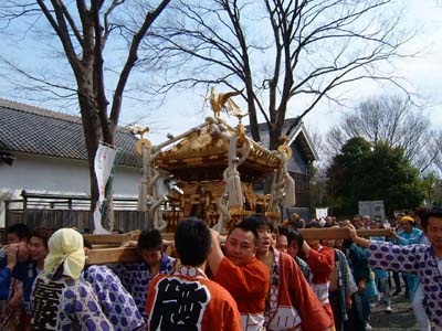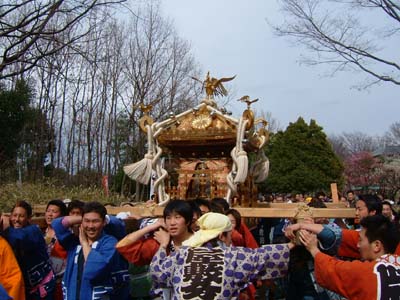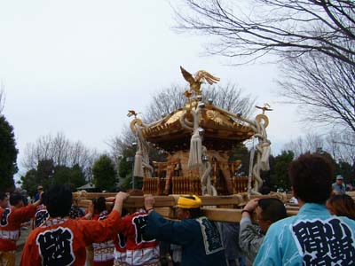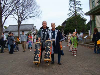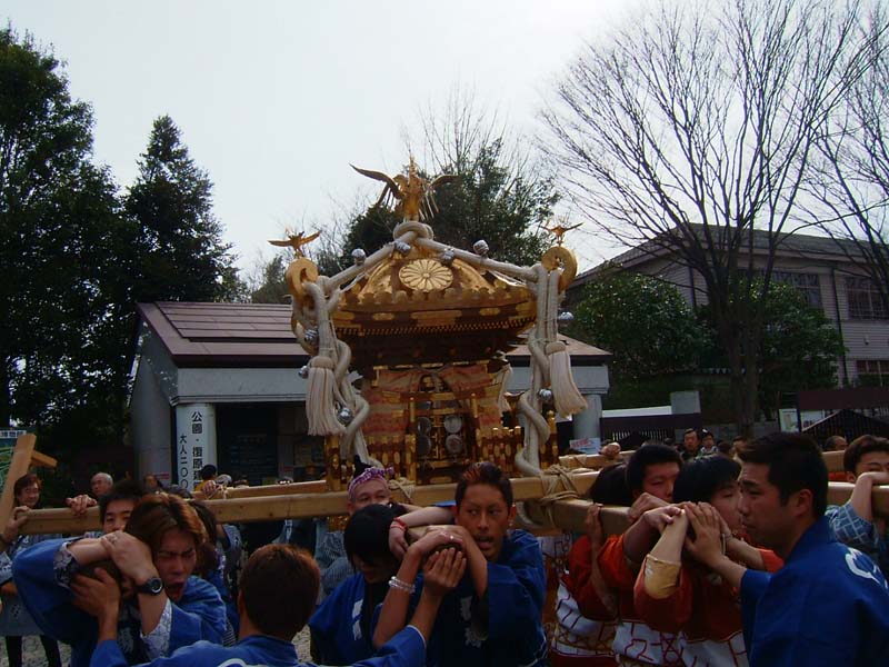 大国魂神社宝物殿より天棒を出し、郷土の森へ運ぶ。