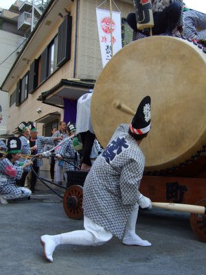 御霊の太鼓の町内廻りの様子。