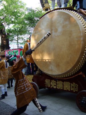 同じく大鳥居前に入ってきた御本社の太鼓。