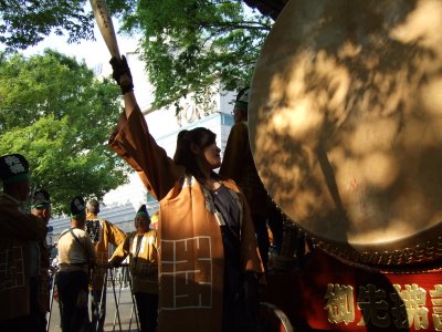 御先払の太鼓を出すところ。
