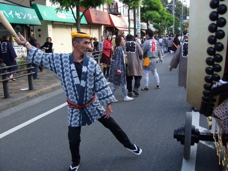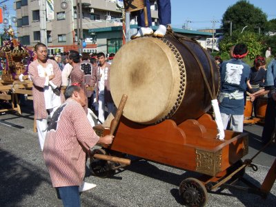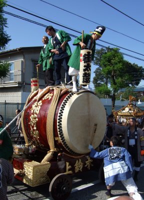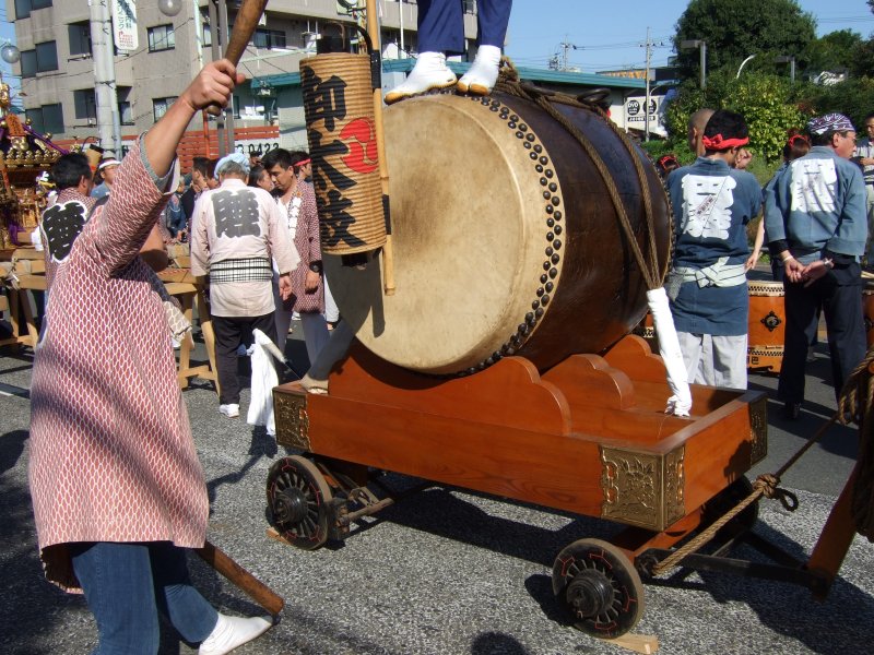 必然的にこの形式だと、大胴は立って叩かないと踊るスペースがありません。