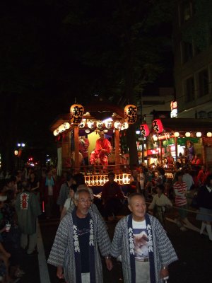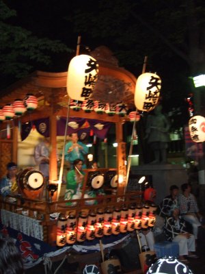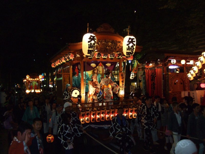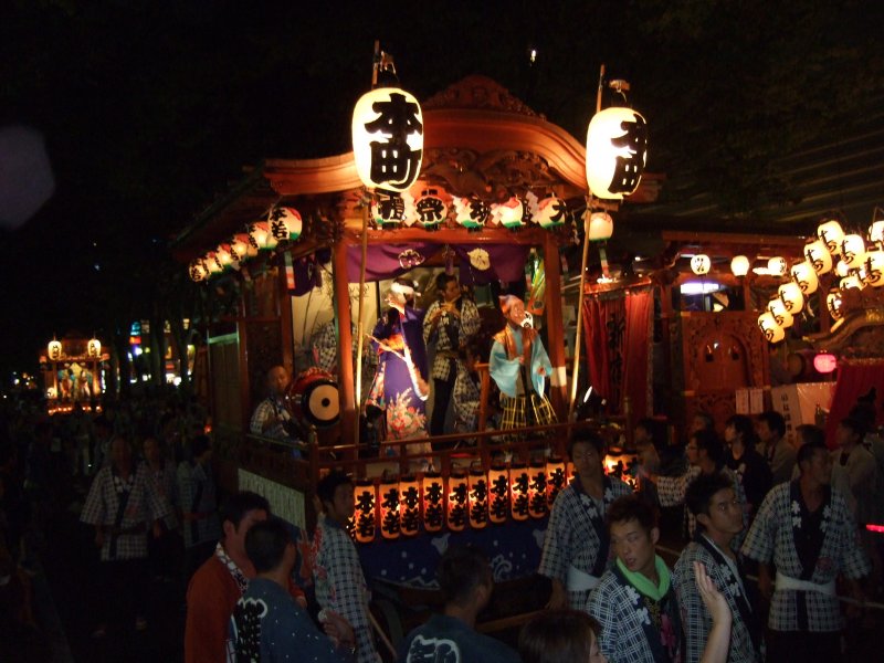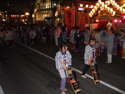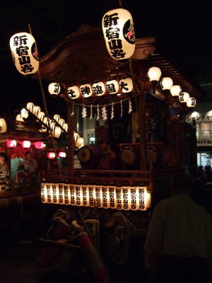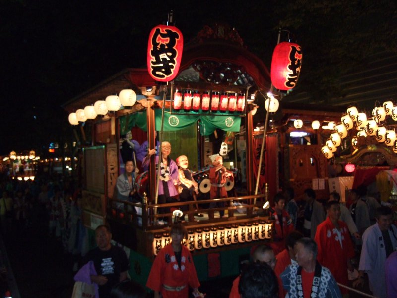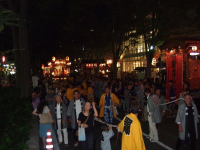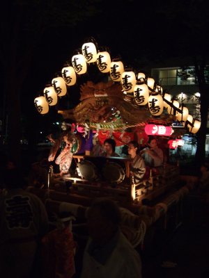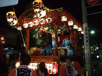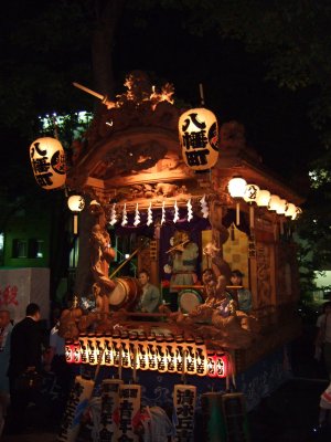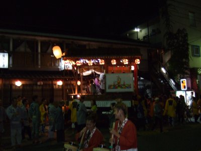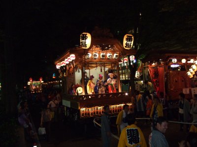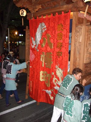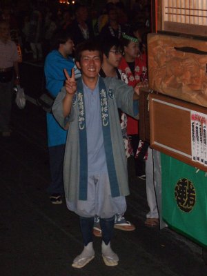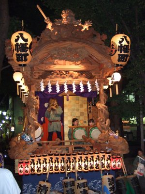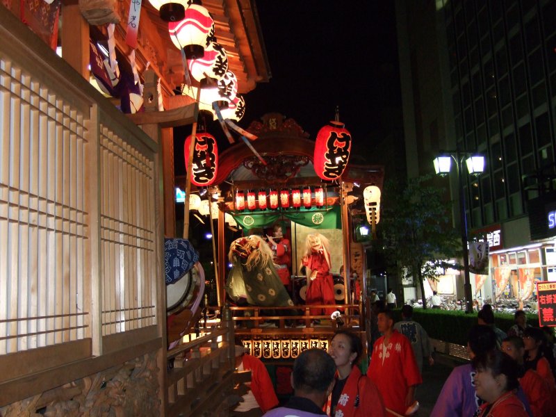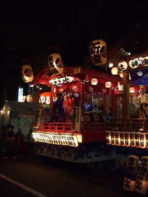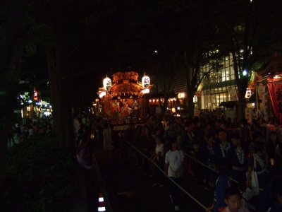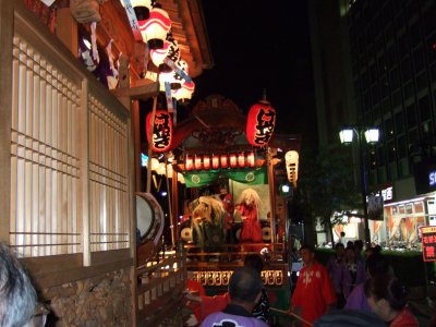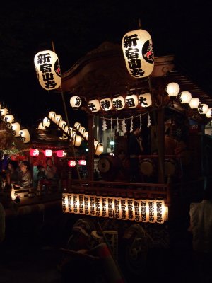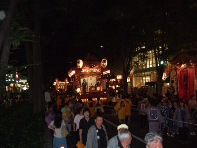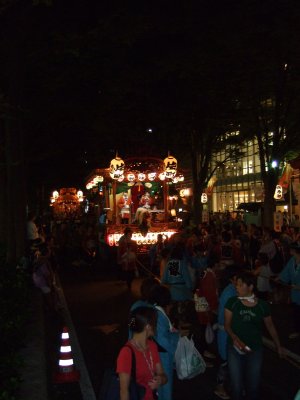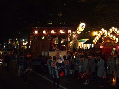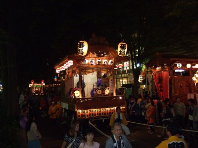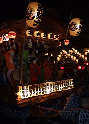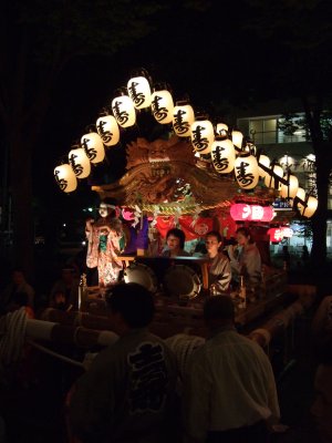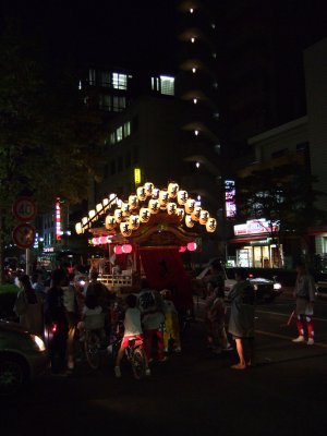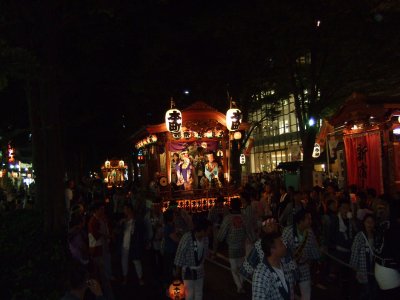 さて、8時ちょっと前、花火があがり山車が戻りはじめます。