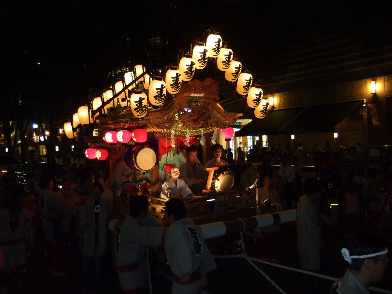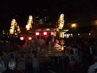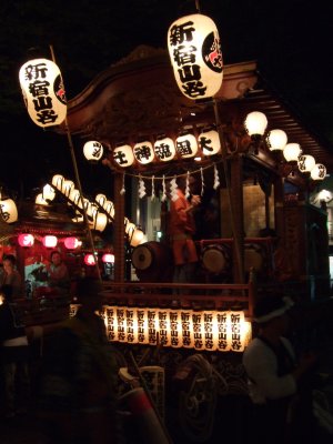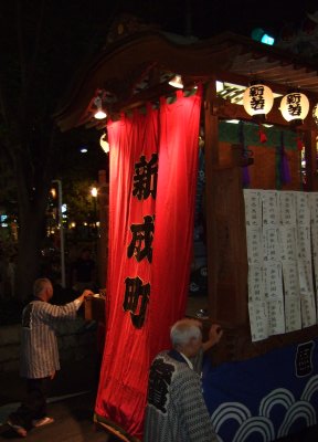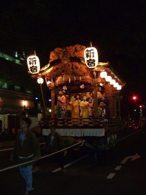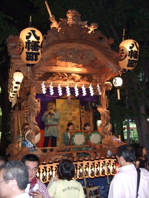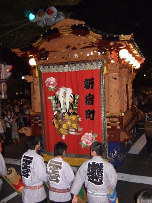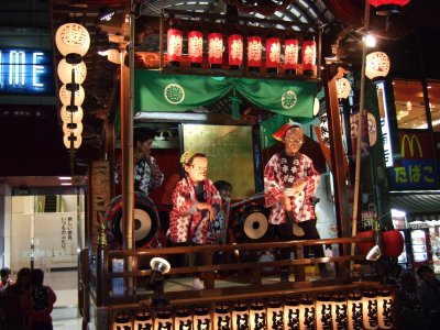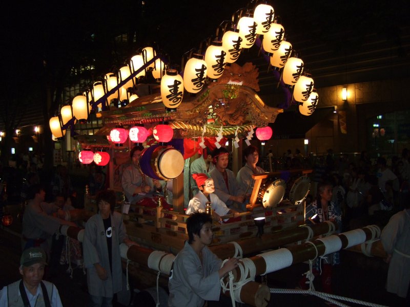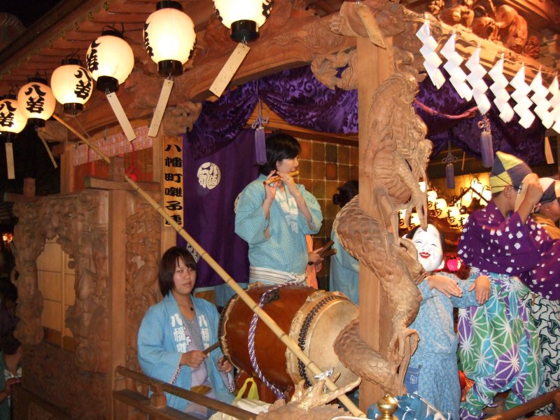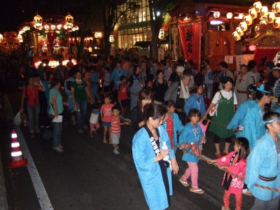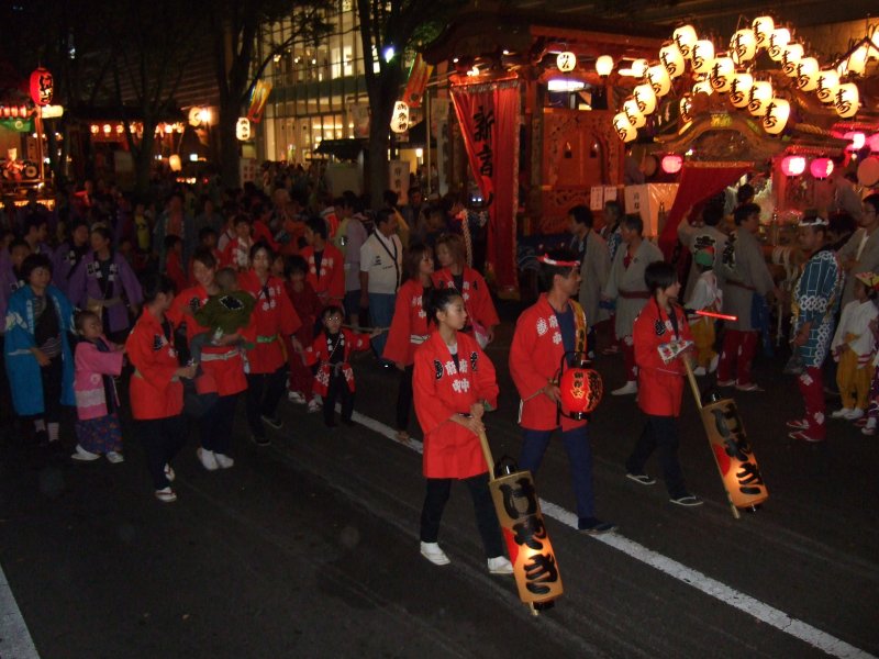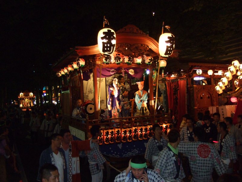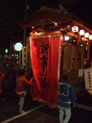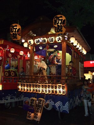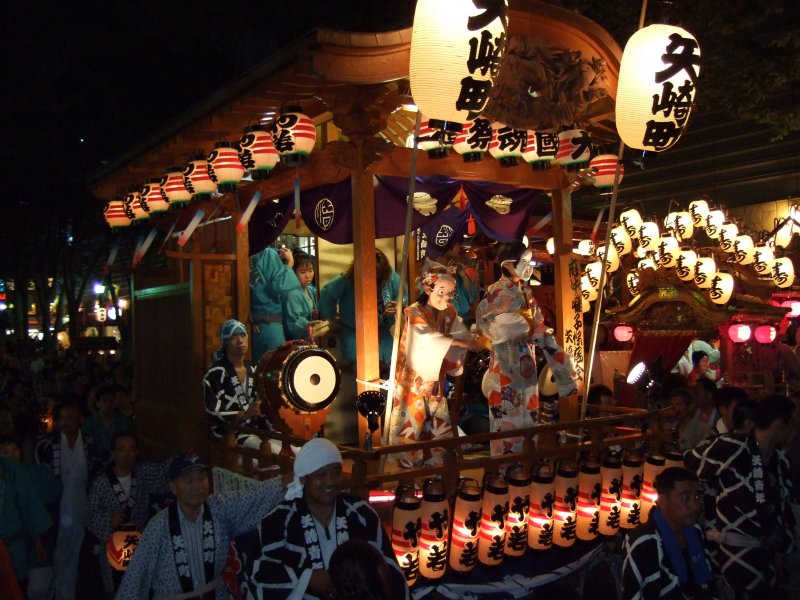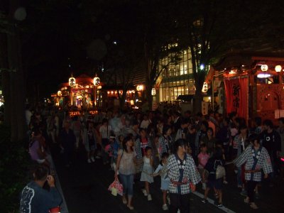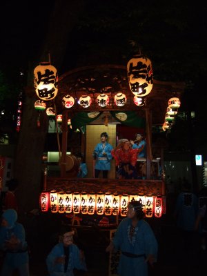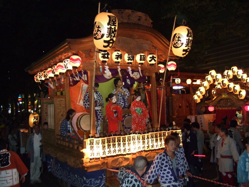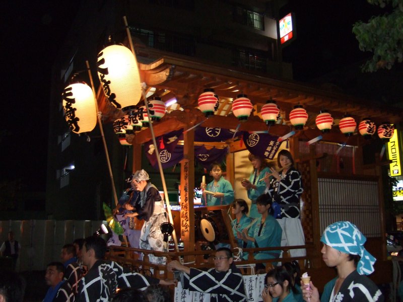 さて、8時ちょっと前、花火があがり山車が戻りはじめます。
