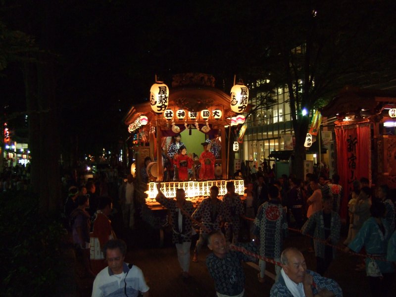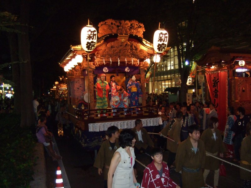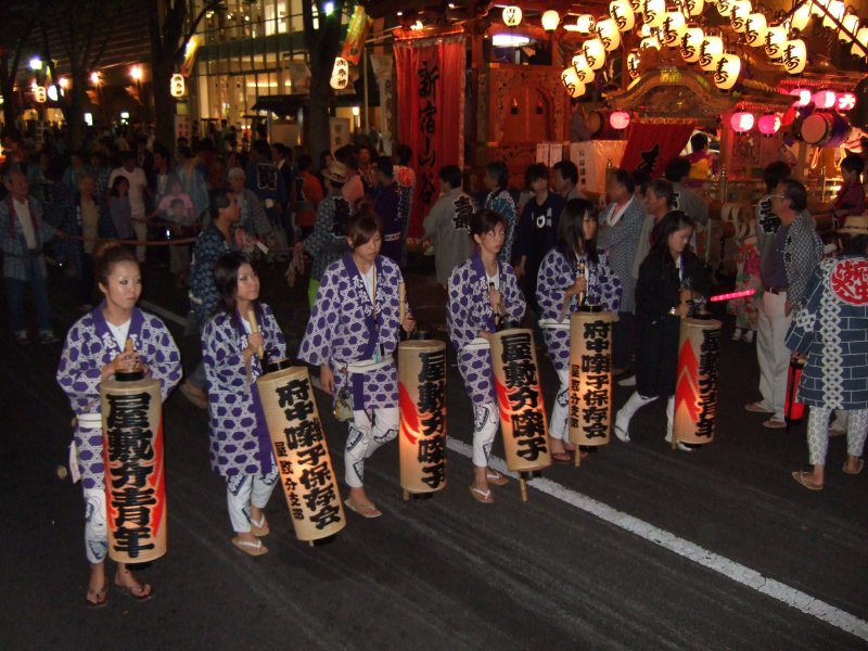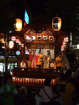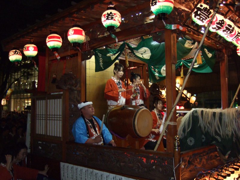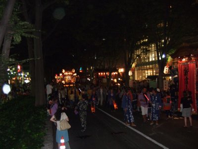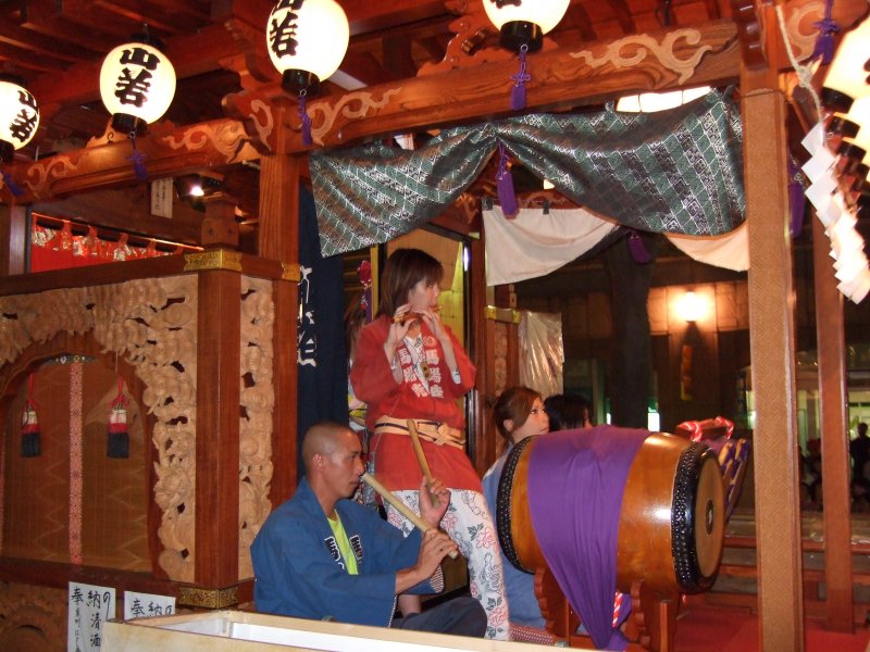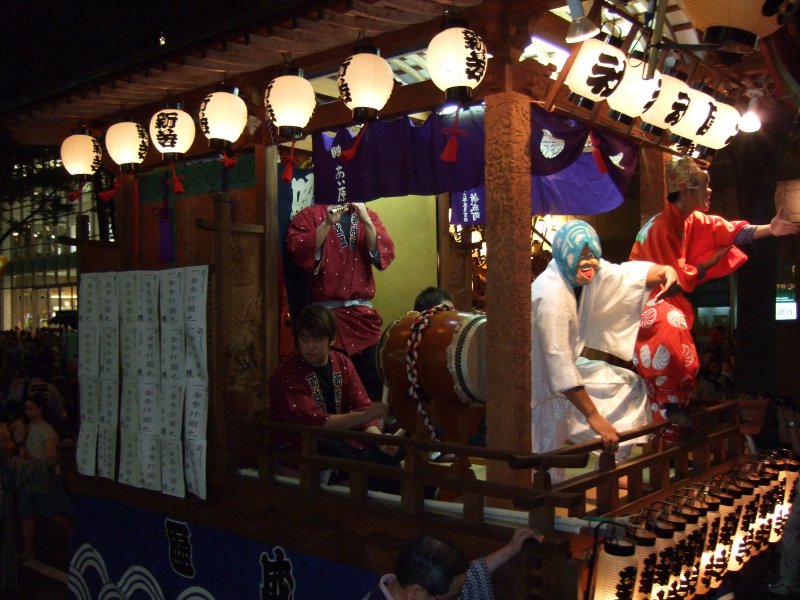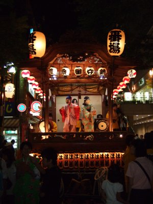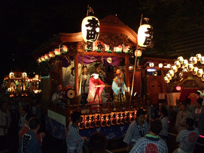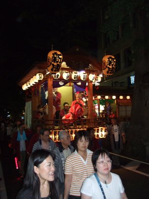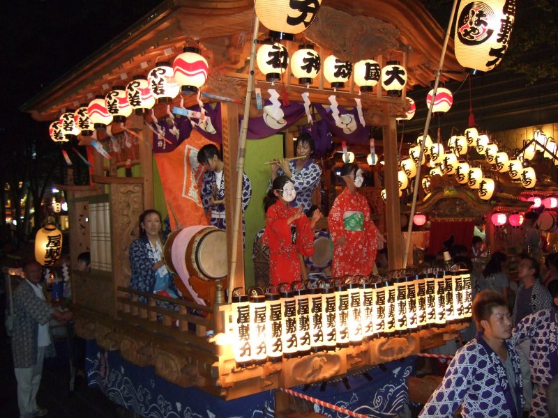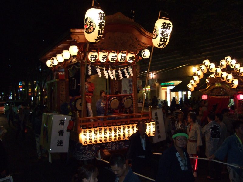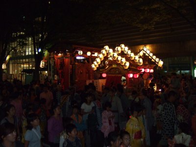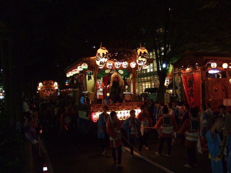 さて、8時ちょっと前、花火があがり山車が戻りはじめます。