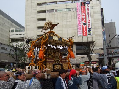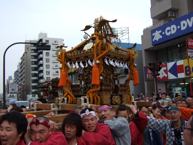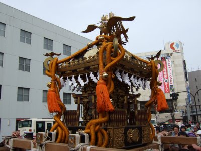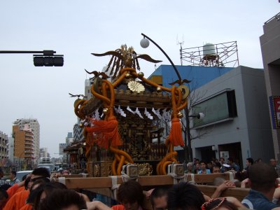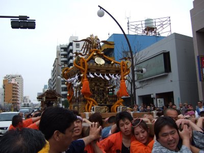 メインの十字路を折り返す。こういう場所で神輿に人が増えます。