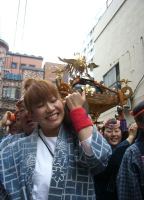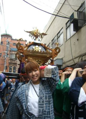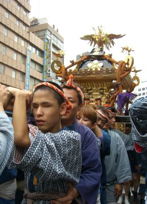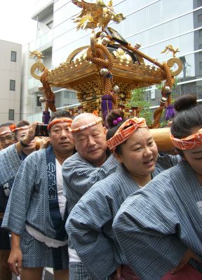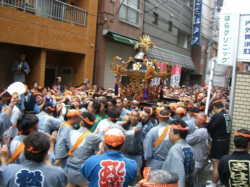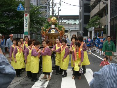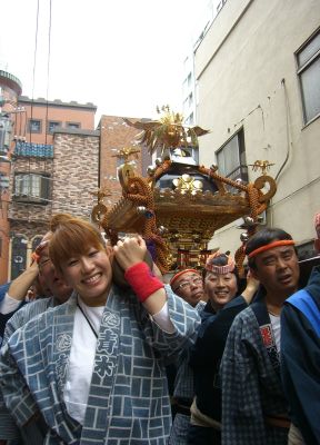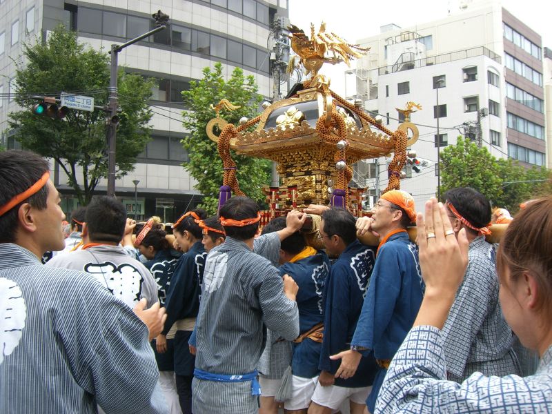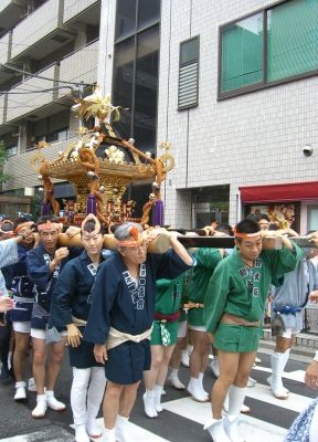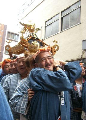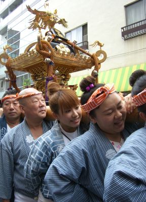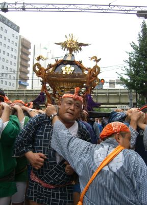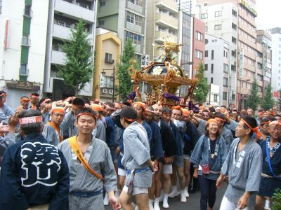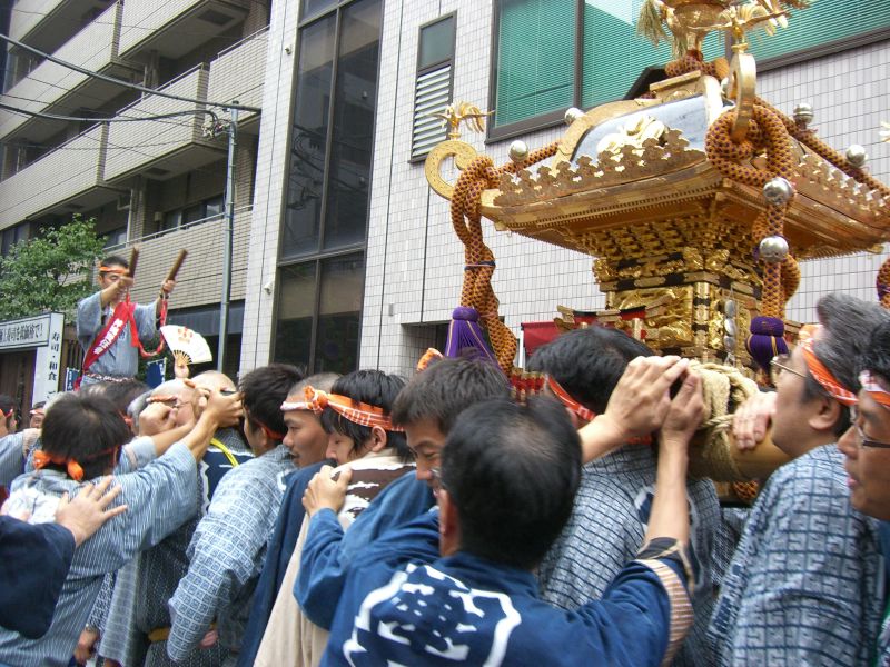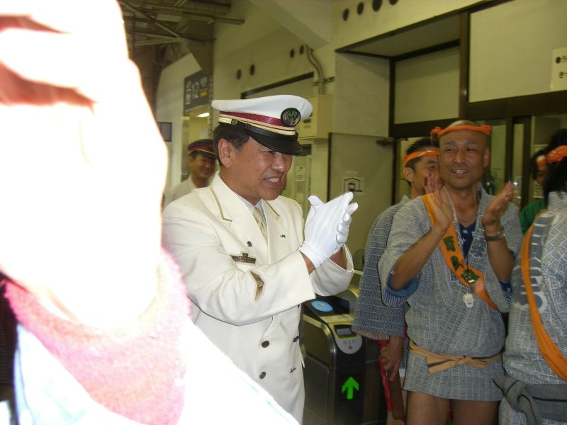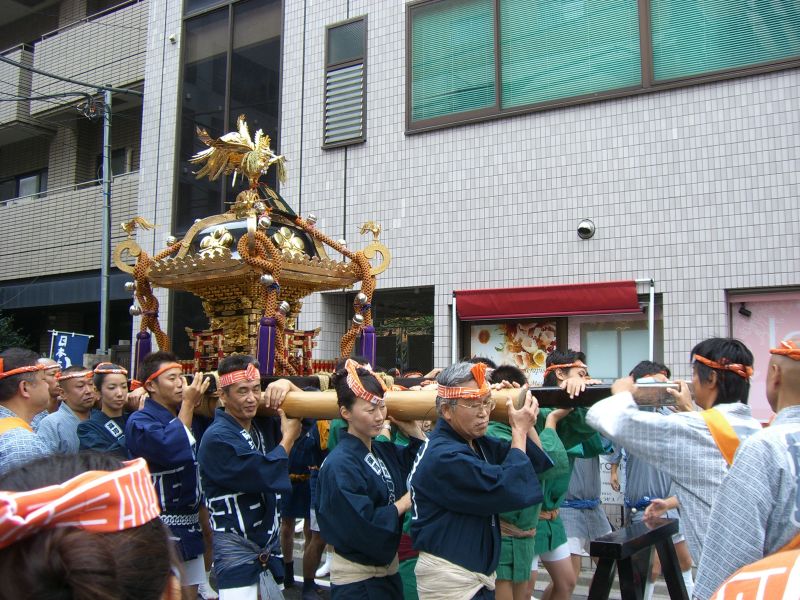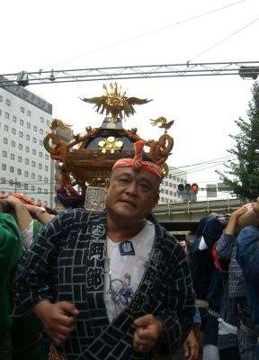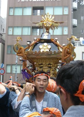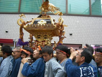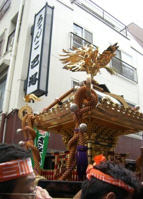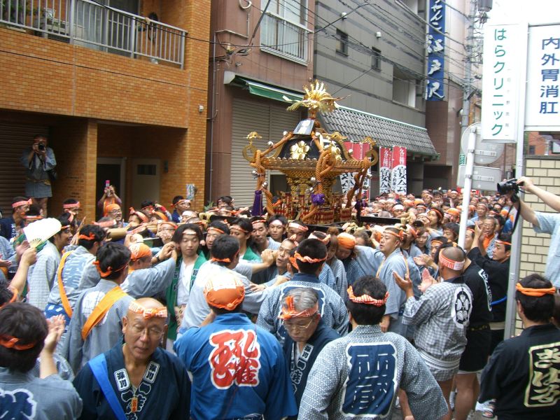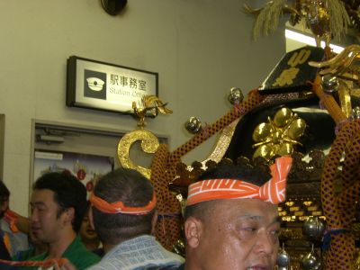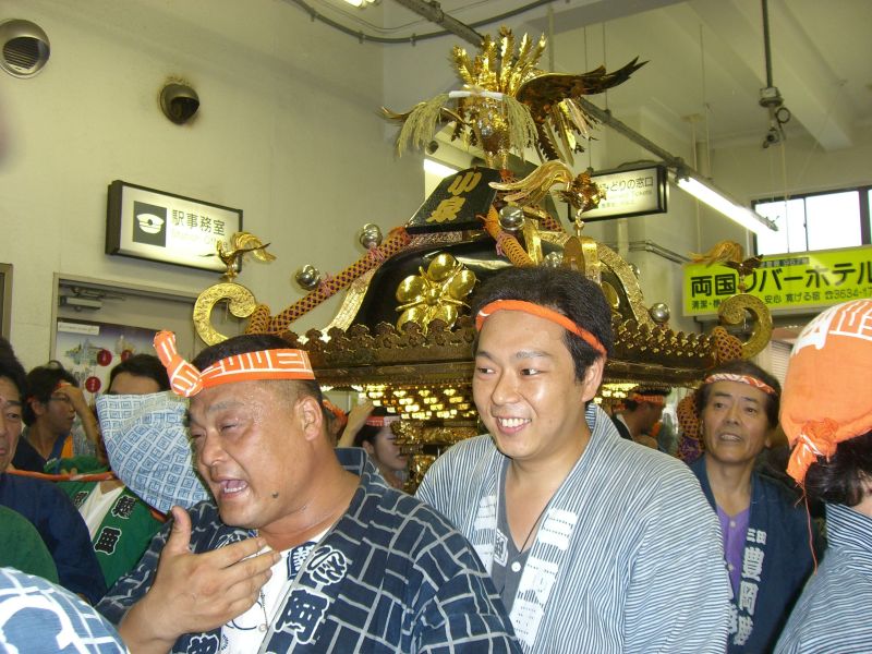 のぶさんより写真を頂きました。 亀戸天神の祭礼。 4年に一度の大祭です。 写真にもありますが、駅構内にも神輿が入ります。 貴重な御写真ありがとうございます。 |