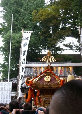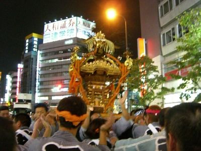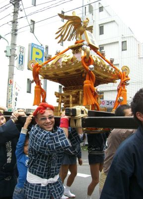 池袋のふくろ祭りの様子です。同好会の神輿がパレードをするとのこと。