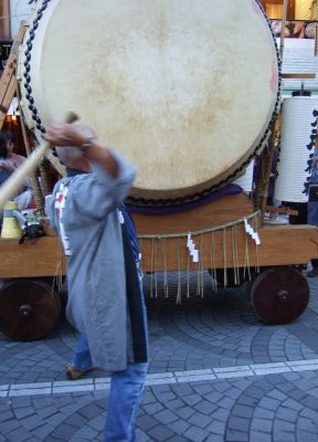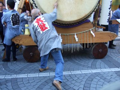 太鼓はそこそこの大きさ。台車が高めなので、打点がかなり高く感じます。