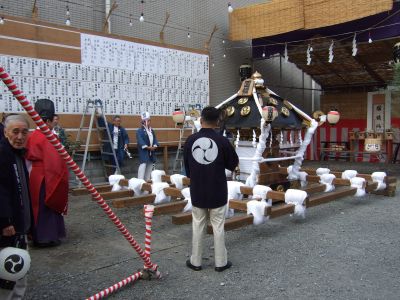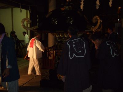 片づけの様子。宮神輿の本来の姿です。