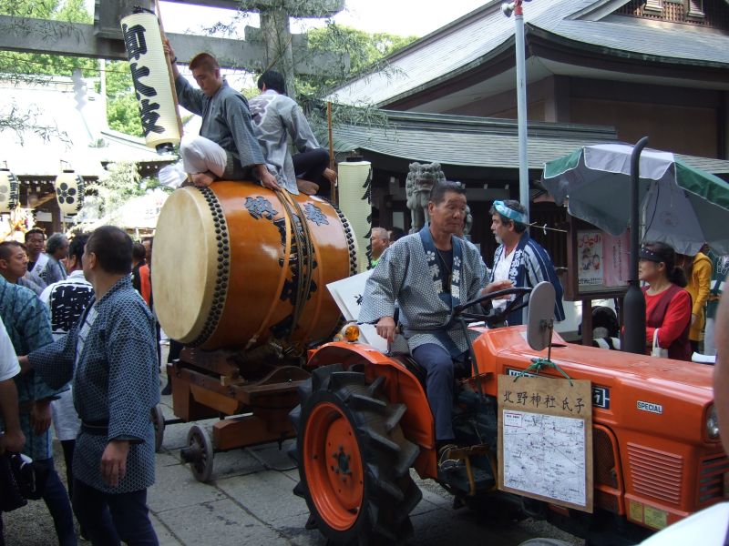 太鼓はトラクターで引っ張る。