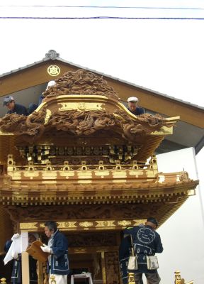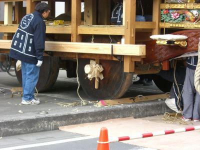 下郷の傘鉾、組み立てのようですから2日に行かれたのでしょうか?