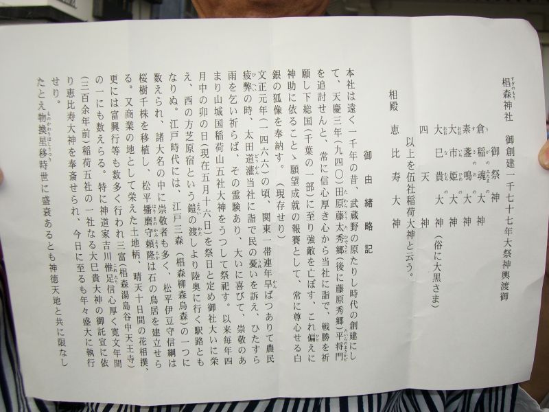 こちらは現在は三年に一度の大祭とのこと。 のぶさん、貴重なお写真をありがとうございました。 今後とも宜しくお願いいたします。 |