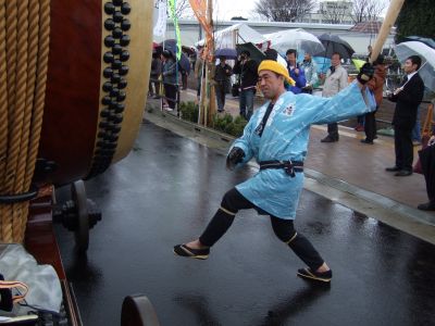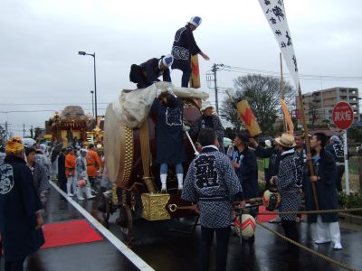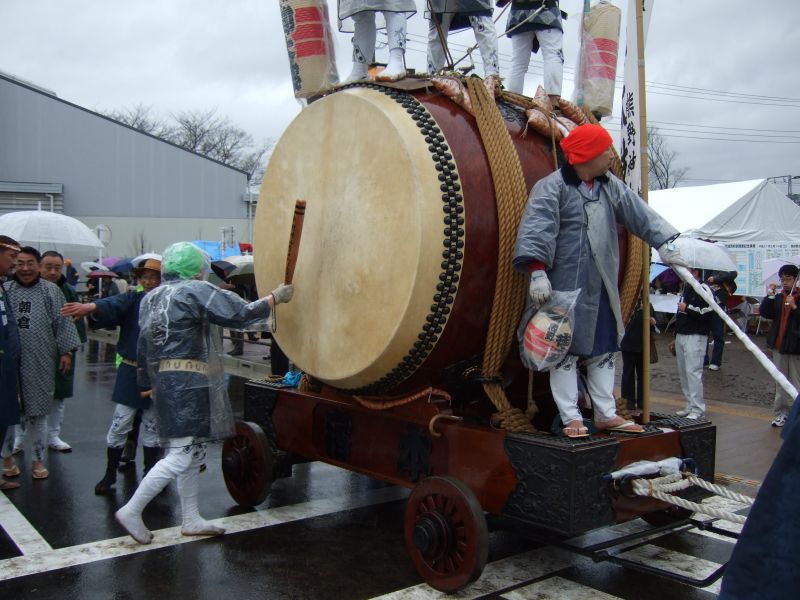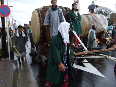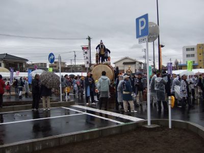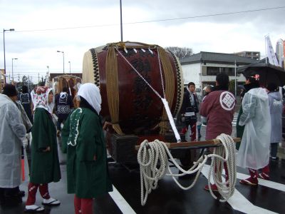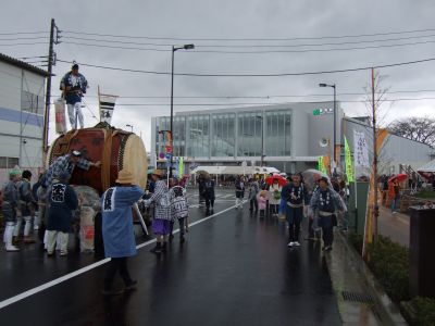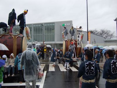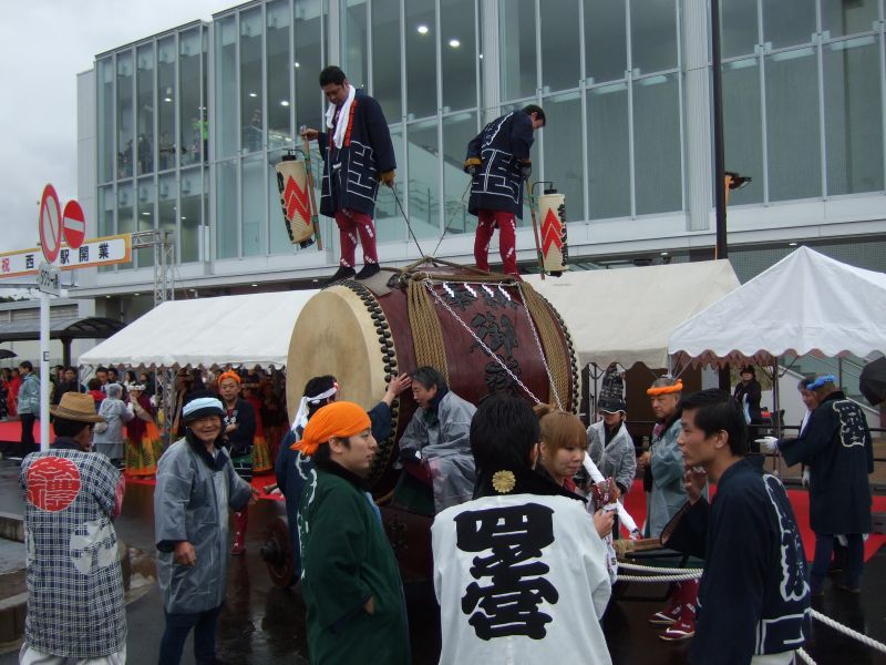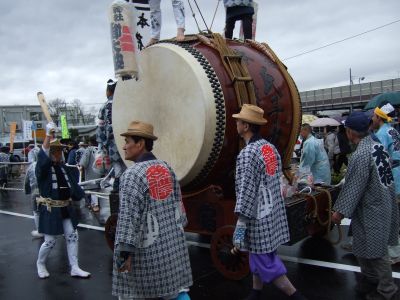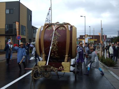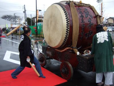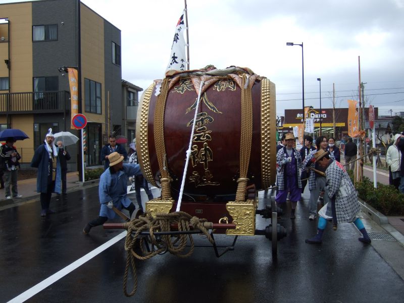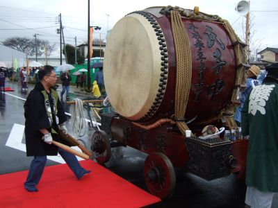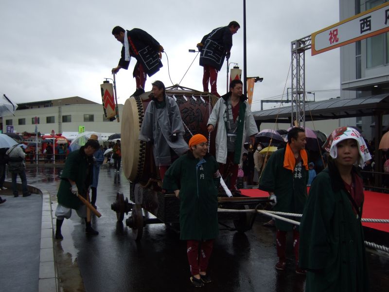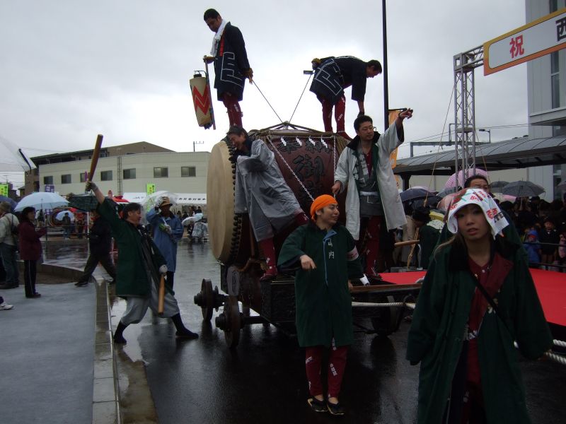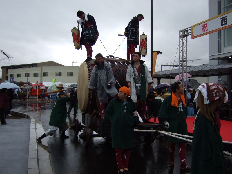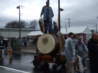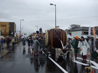 その記念式典が行われ、パレードには太鼓が5張、神輿1基、山車1台が出ました。