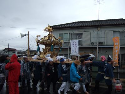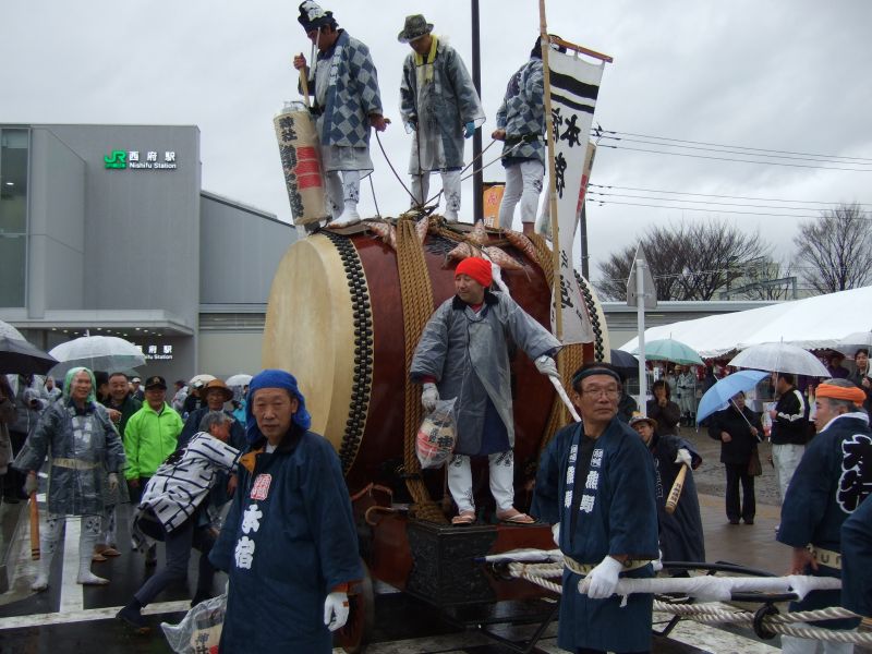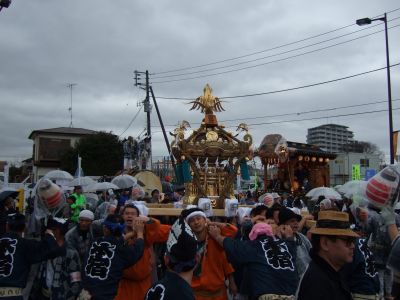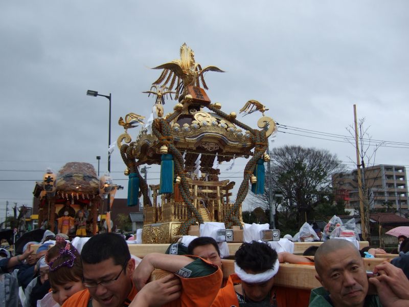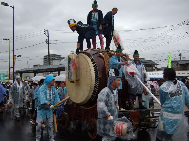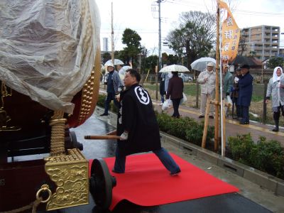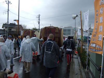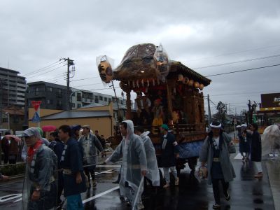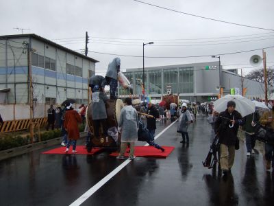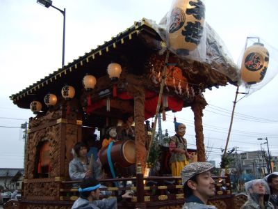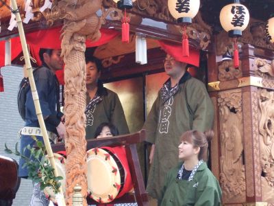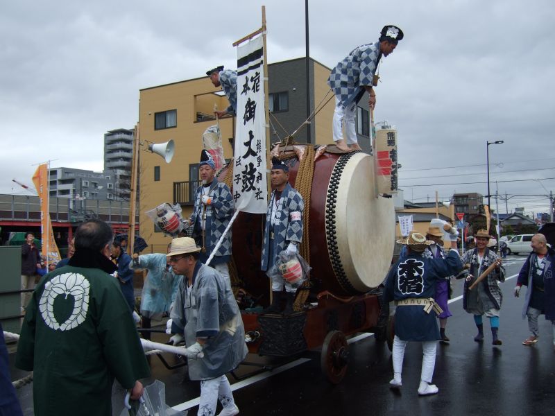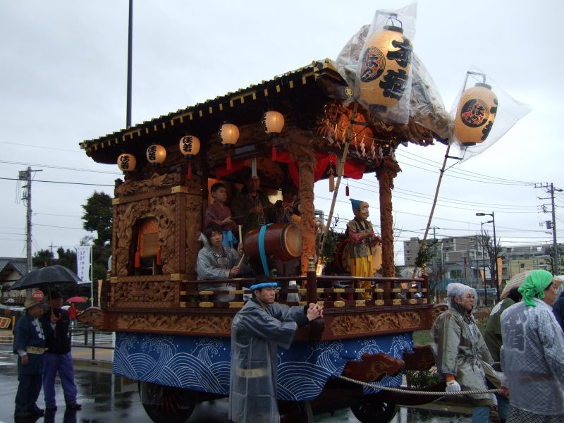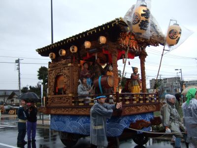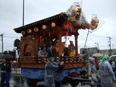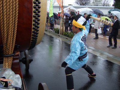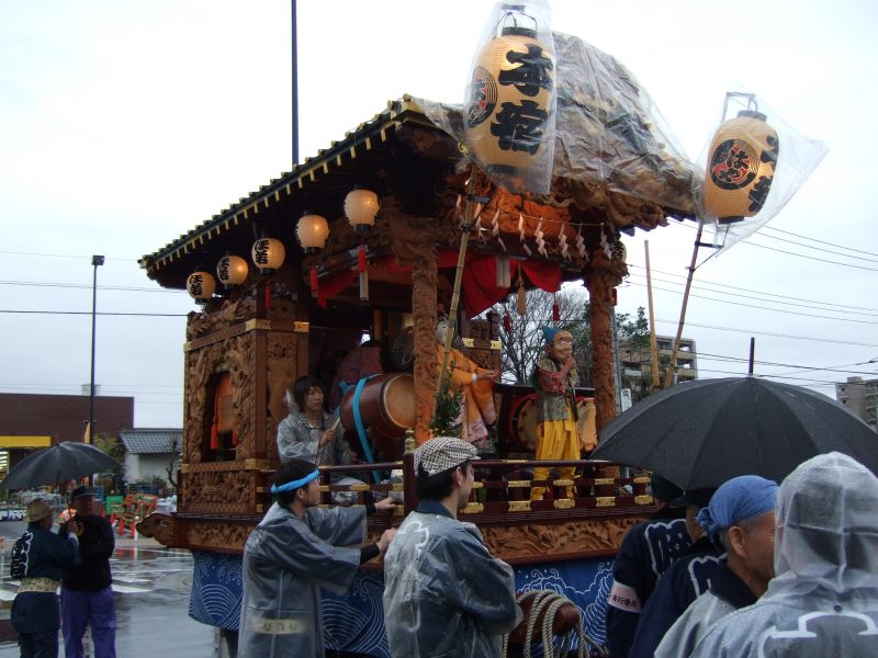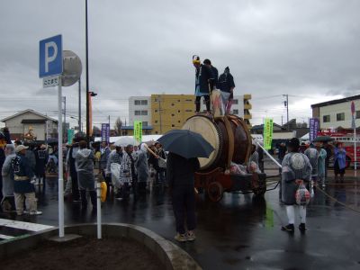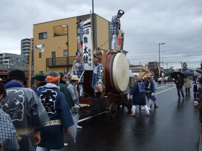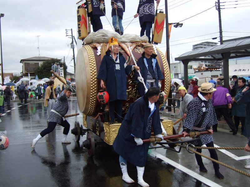 その記念式典が行われ、パレードには太鼓が5張、神輿1基、山車1台が出ました。