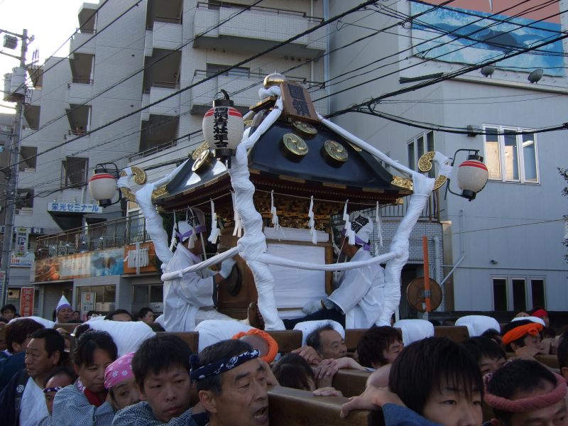 ガッチャガッチャと鏡を鳴らす、国領神社の神輿です。