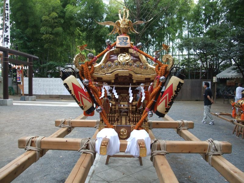 さて、こちらは多摩の一ノ宮。神輿を修繕して、ピッカピカです。