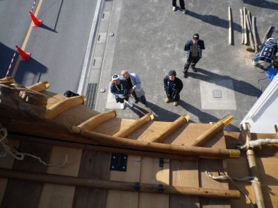 のぶさんより写真を頂きました。 秩父神社祭礼の様子です。 下郷傘鉾の組み立ての様子など、貴重なショットが多いです。 貴重な御写真ありがとうございます。 |