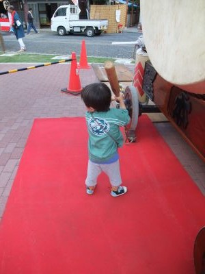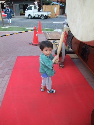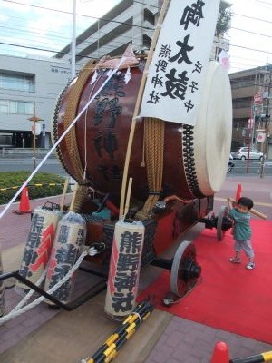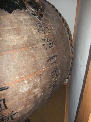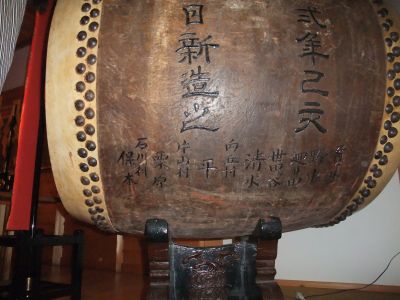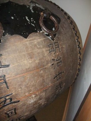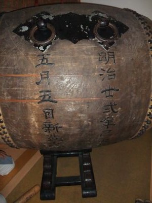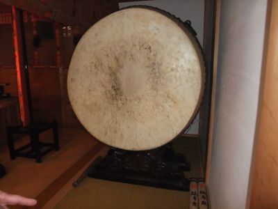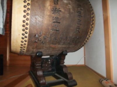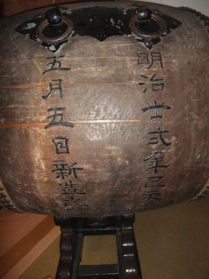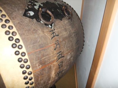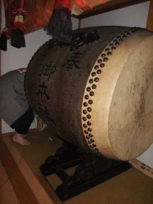 拝殿に上がり込ませていただき、太鼓を見せてもらう。