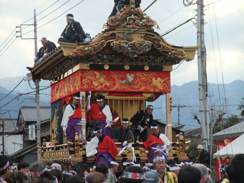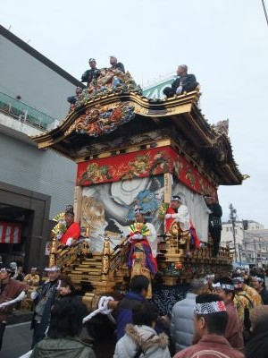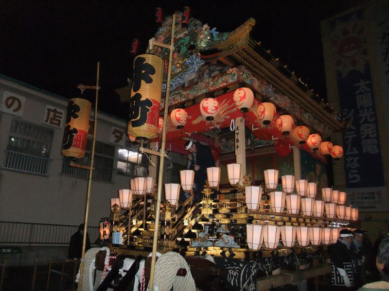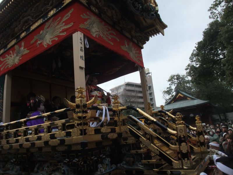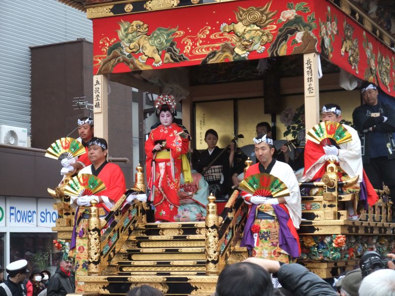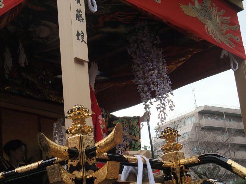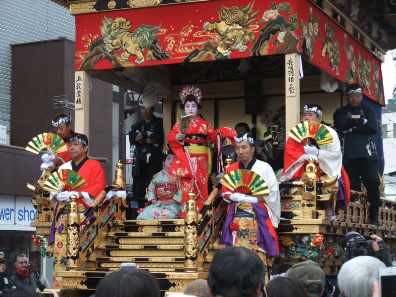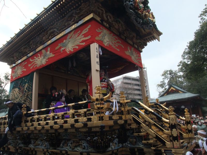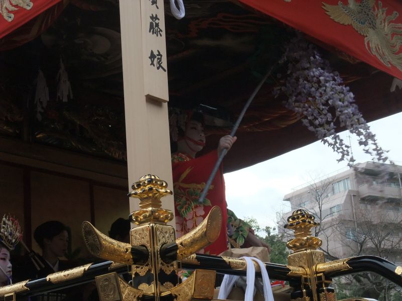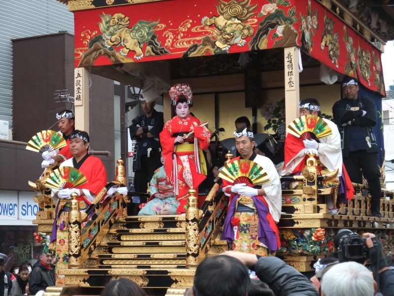 神社に向かって奉納中の中町屋台。演目は藤娘。