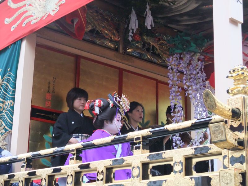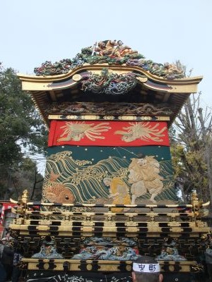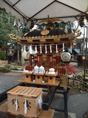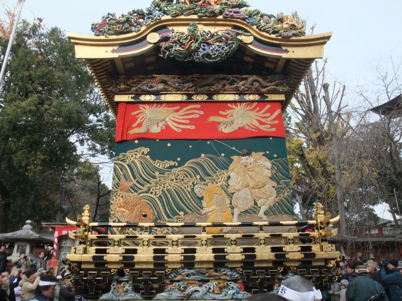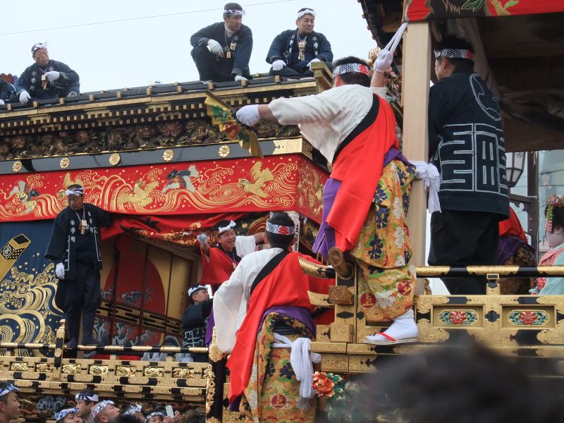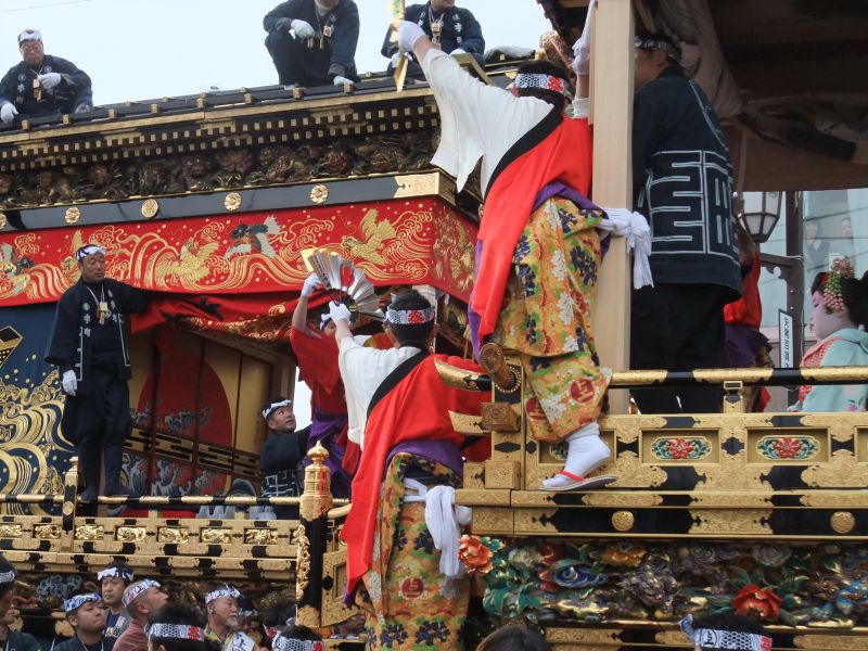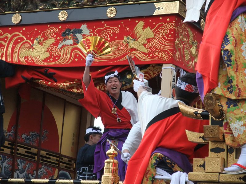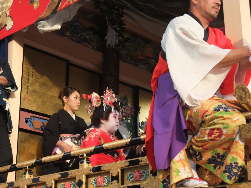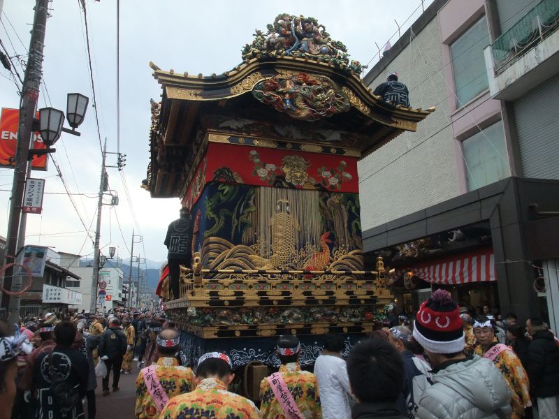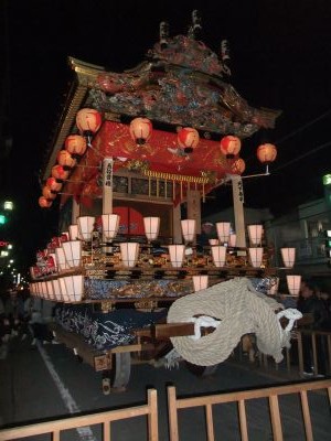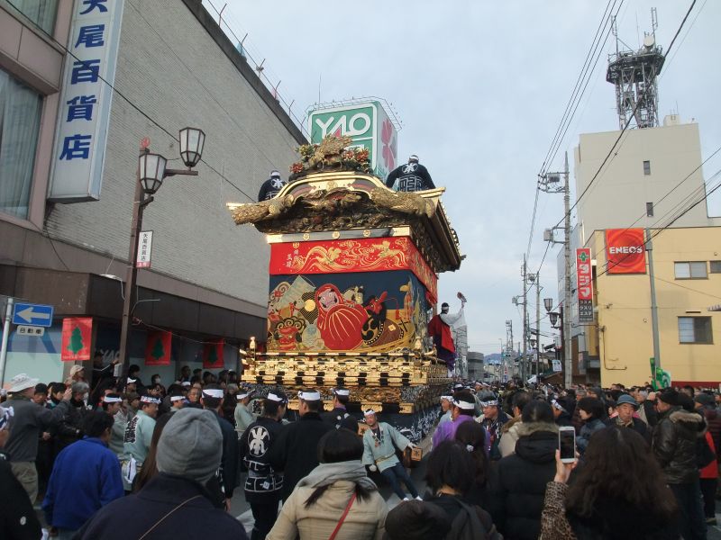 神社に向かって奉納中の中町屋台。演目は藤娘。