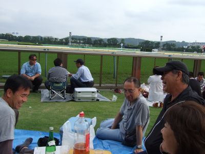 競馬場に持ち込みで芝生で楽しく呑むのです。