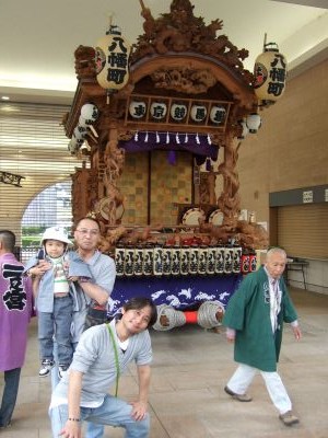 ダービー80回を記念して展示。二之宮の太鼓と八幡町の山車。