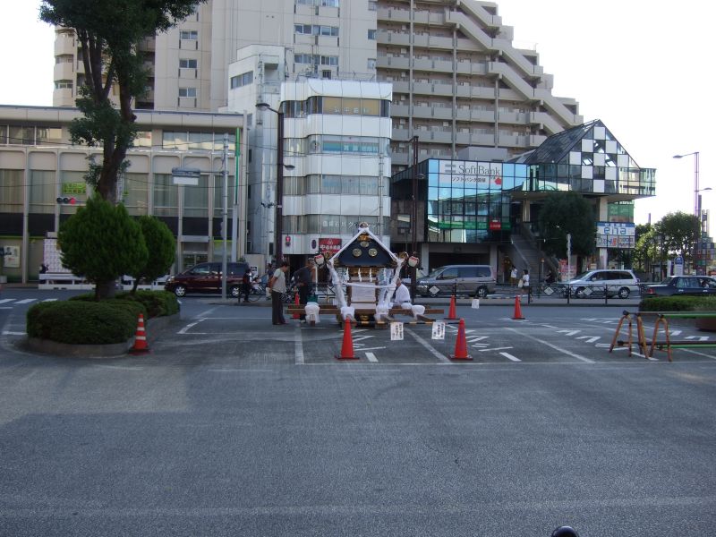 国領へ到着。駅前にポツンと残る宮神輿。