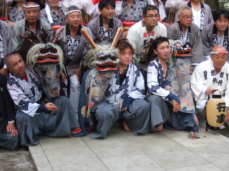 獅子舞です。土俵に向かいます。