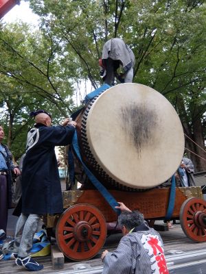 府中市制60周年を記念するシリーズにあわせて、太鼓をもっていきます。