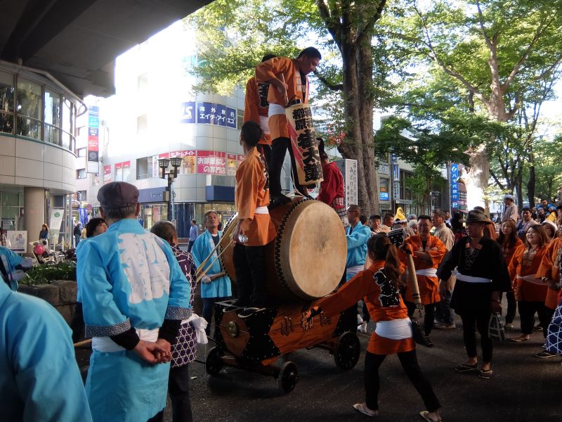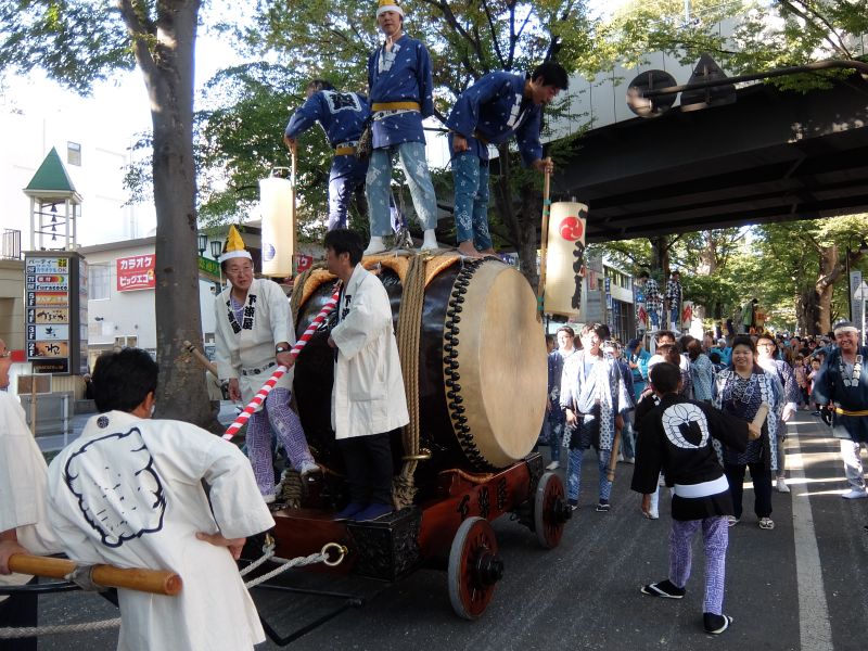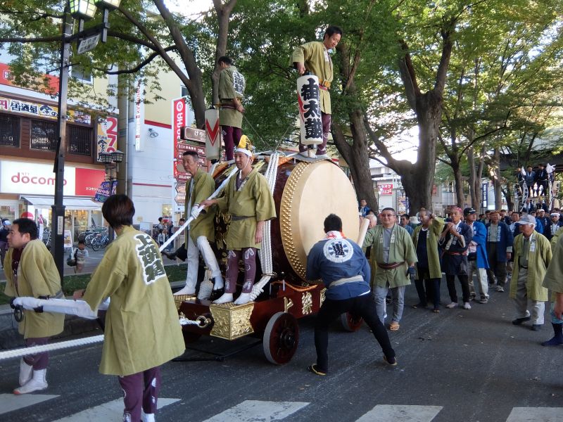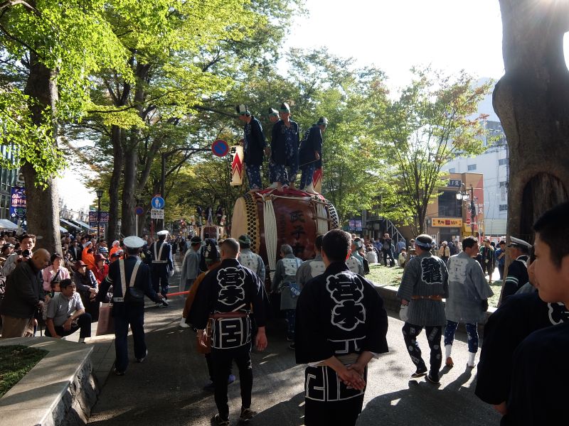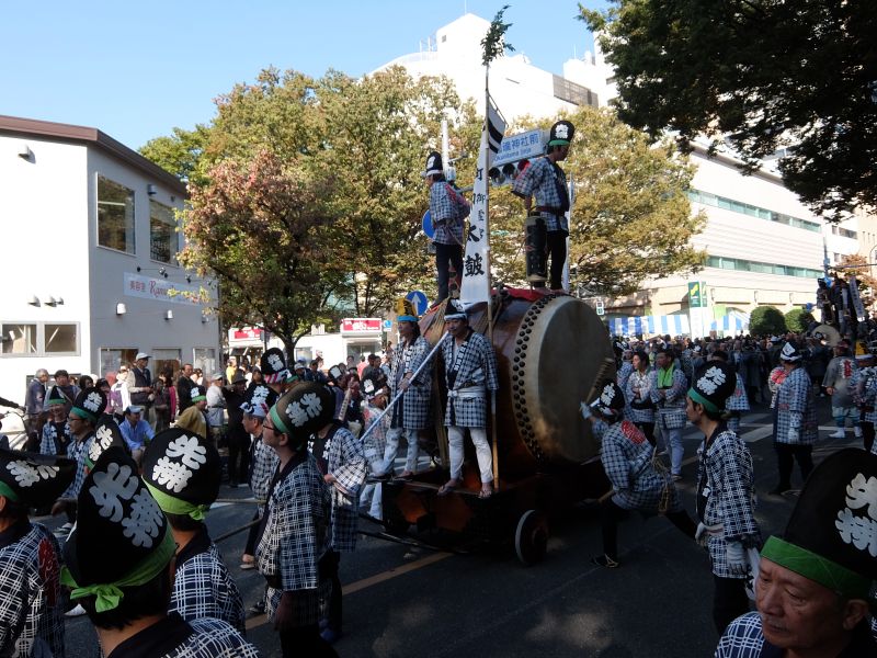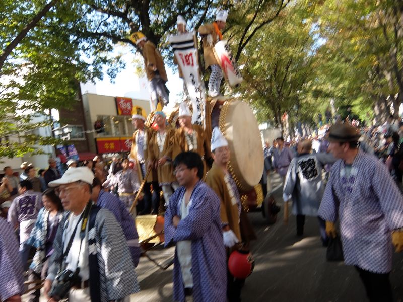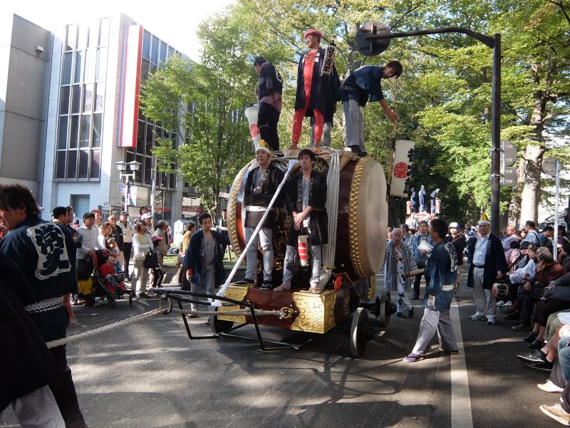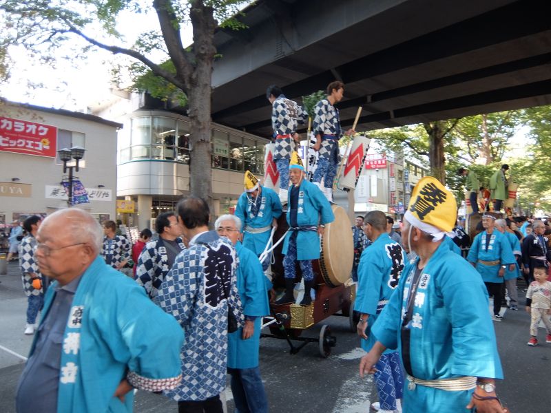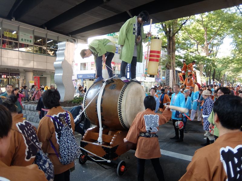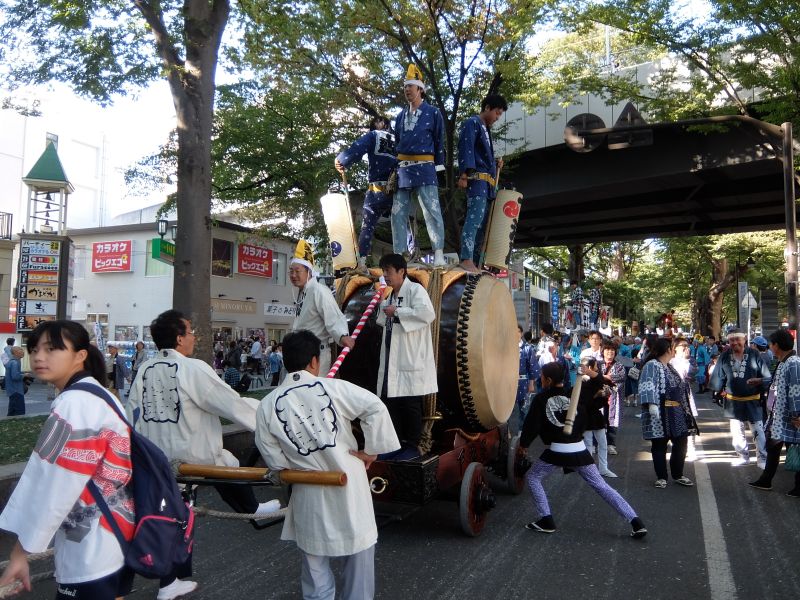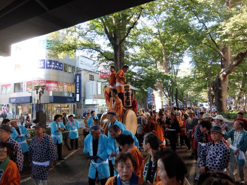 太鼓パレードと民謡流し、そして山車のパレードです。