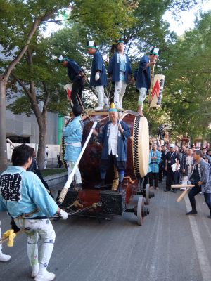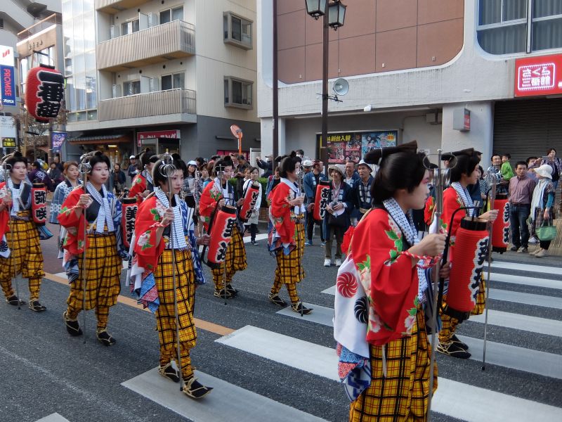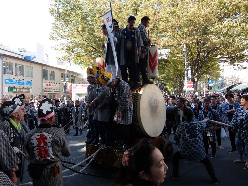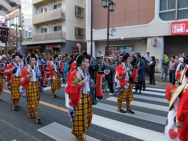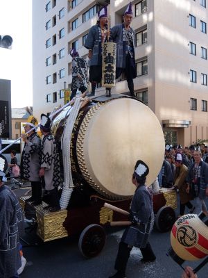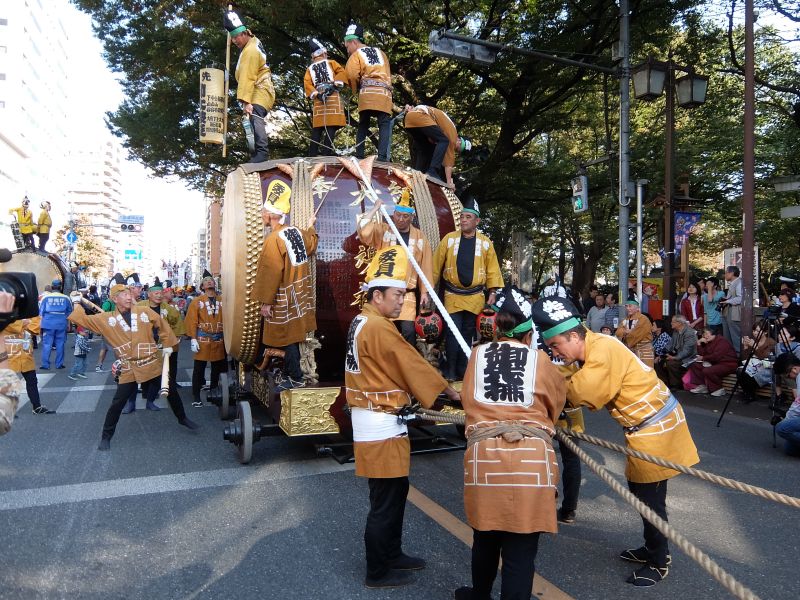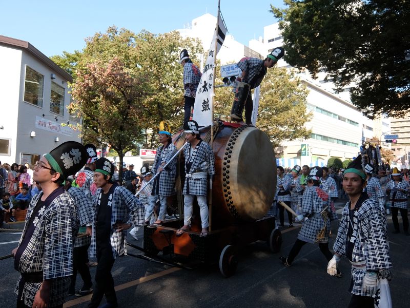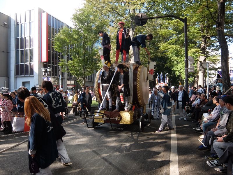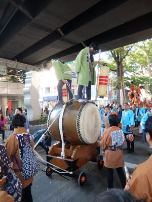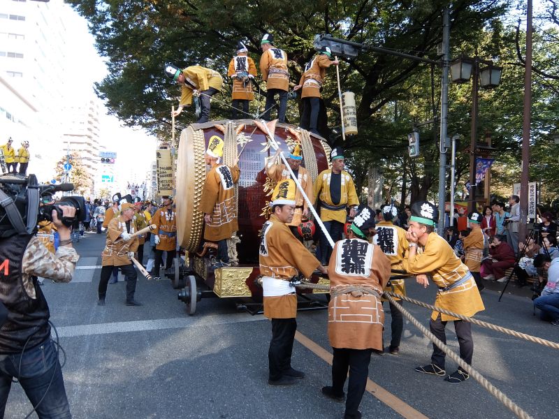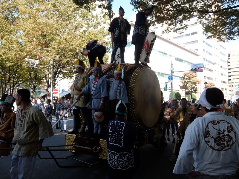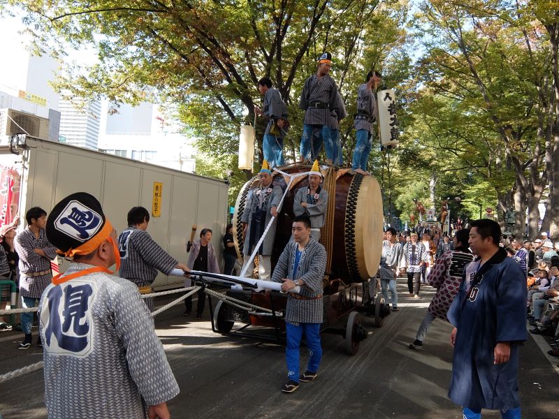 太鼓パレードと民謡流し、そして山車のパレードです。