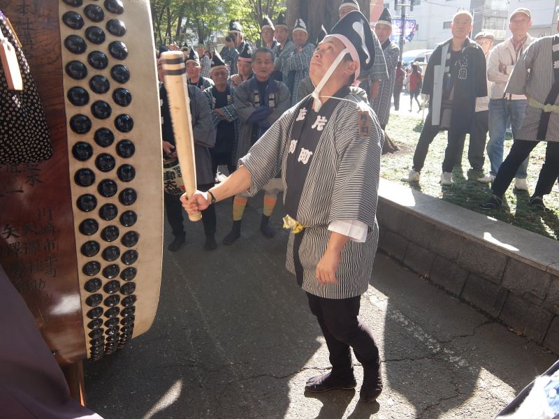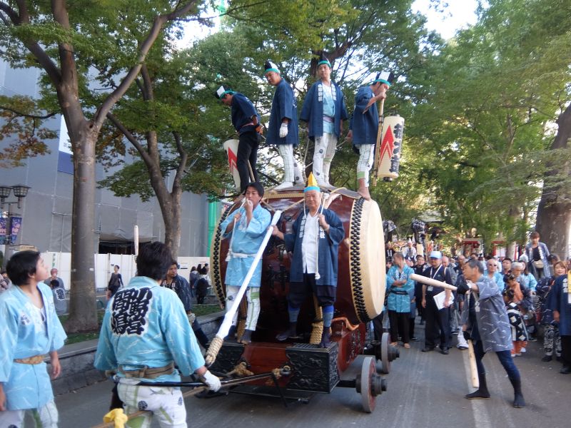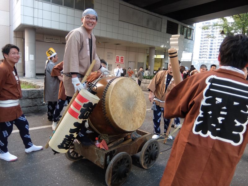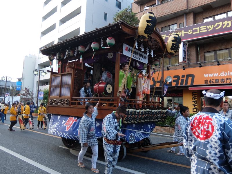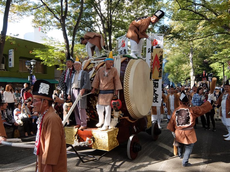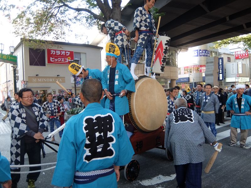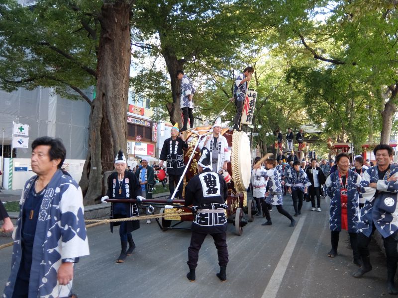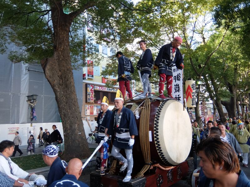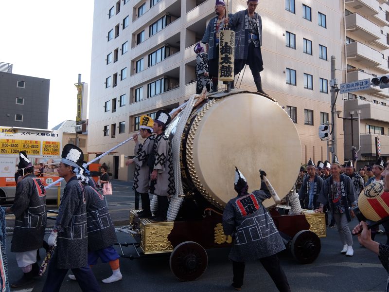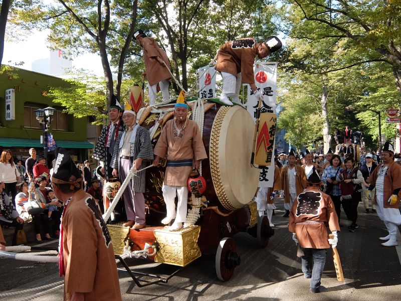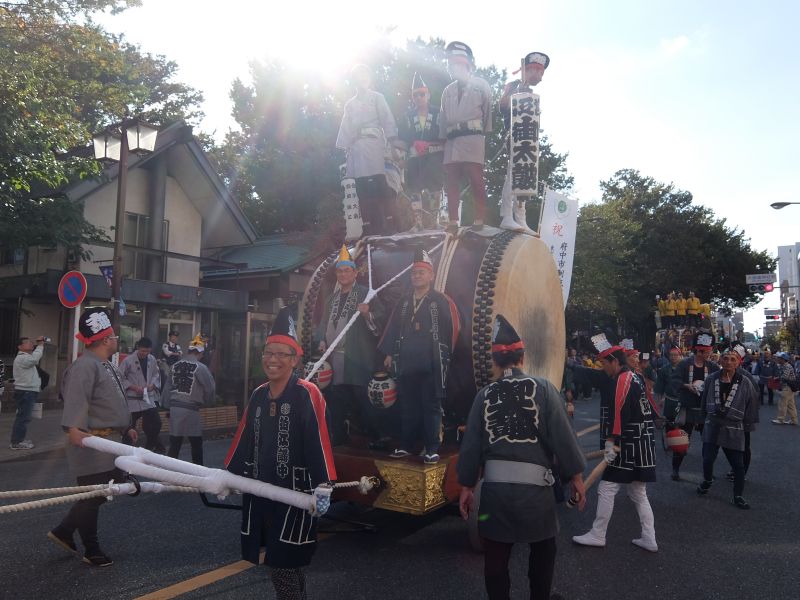 太鼓パレードと民謡流し、そして山車のパレードです。