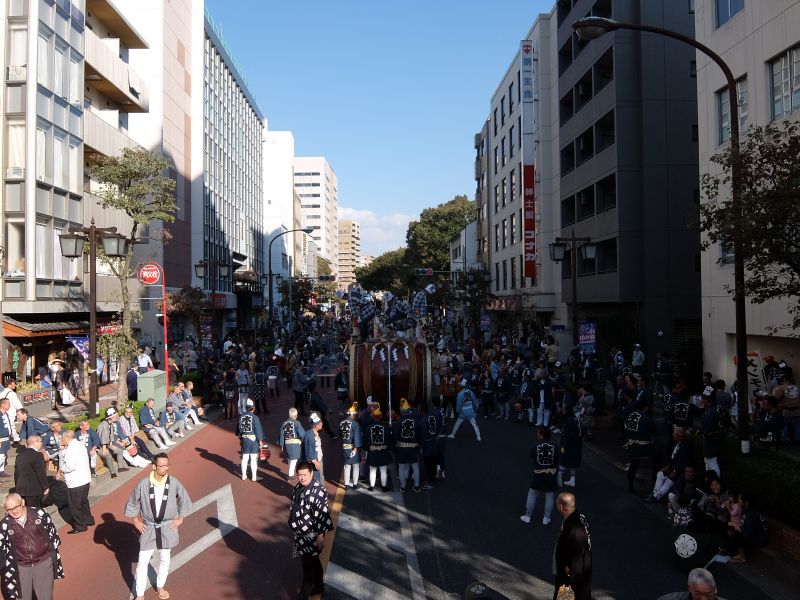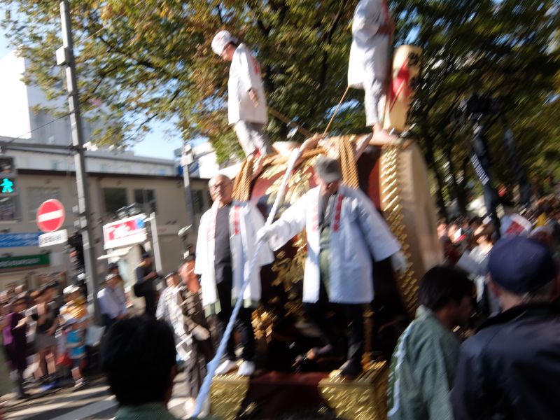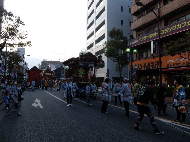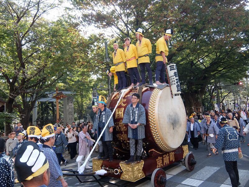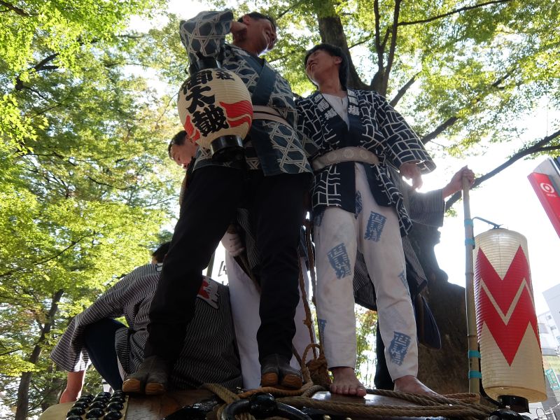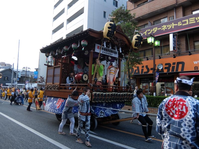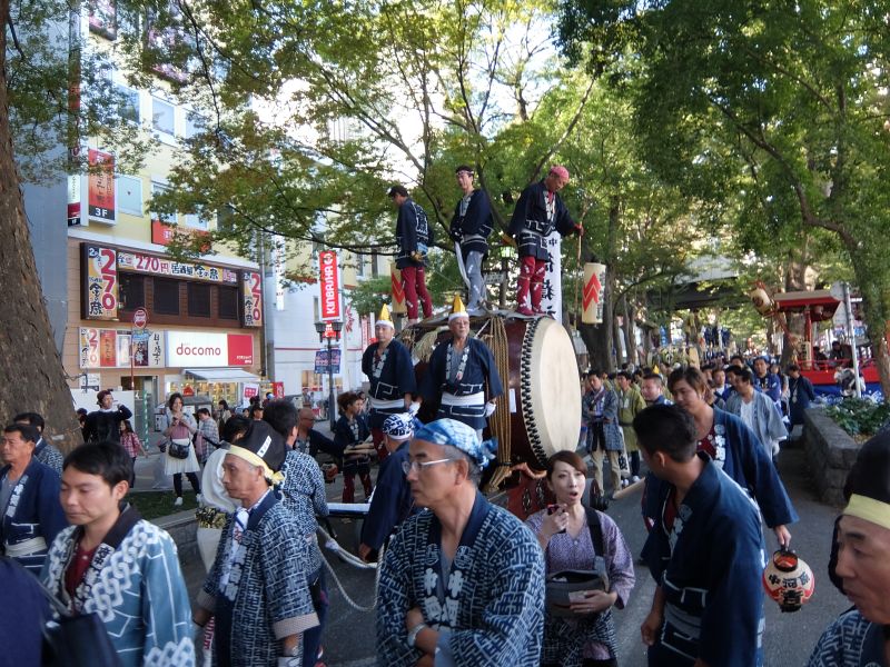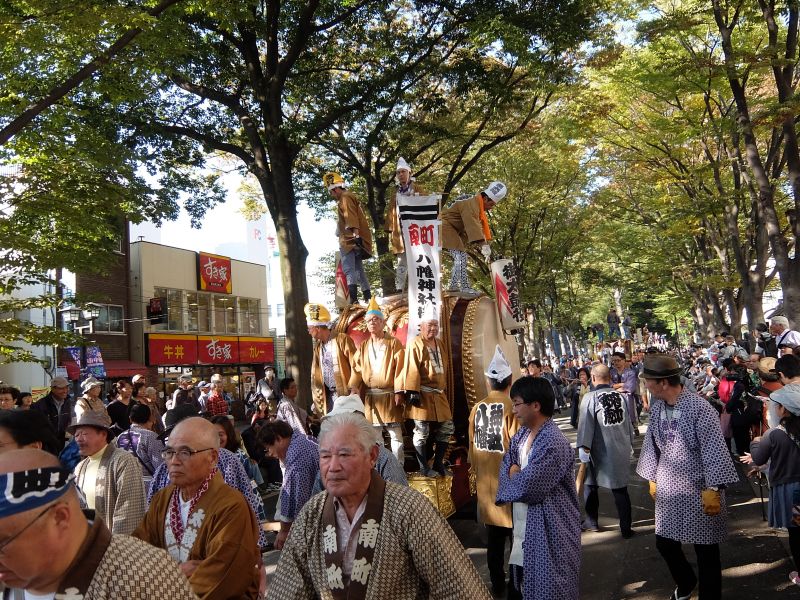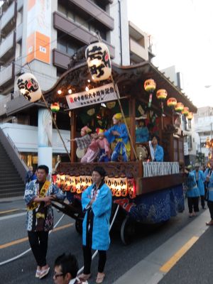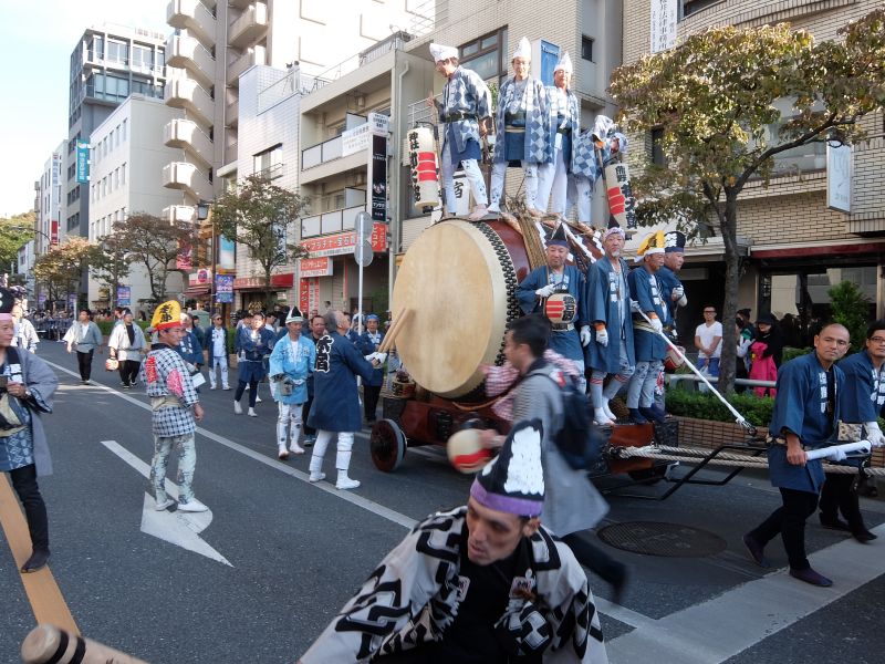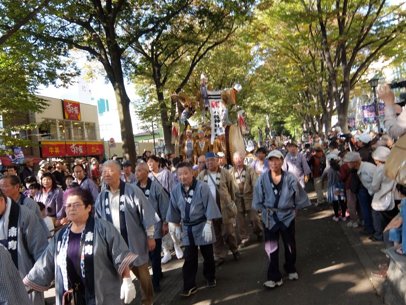 太鼓パレードと民謡流し、そして山車のパレードです。