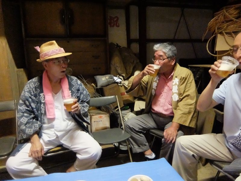 倉庫に場所を作って頂いて、ご馳走になりました。